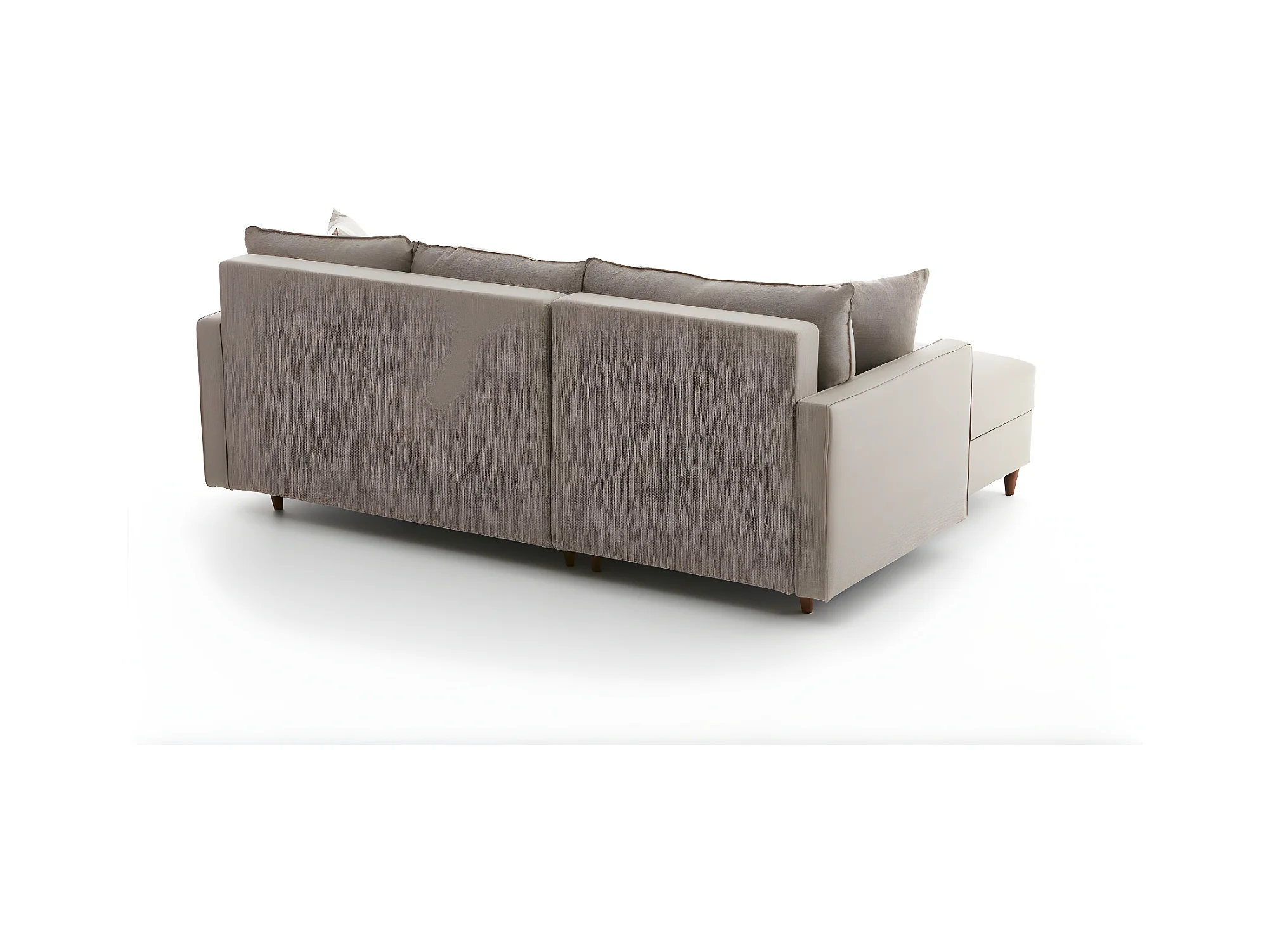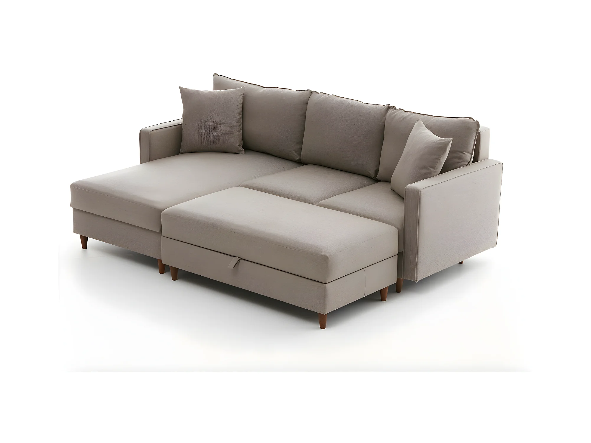 Canapé d'angle à gauche convertible avec pouf-coffre Evania Tissu Taupe