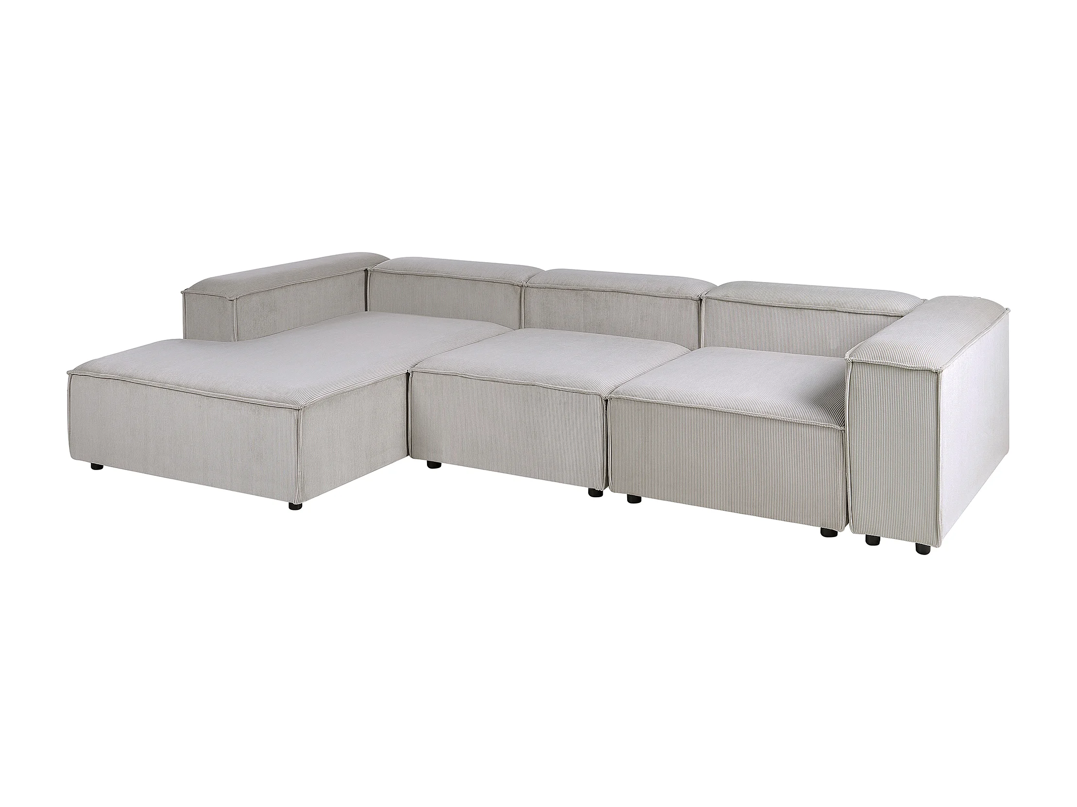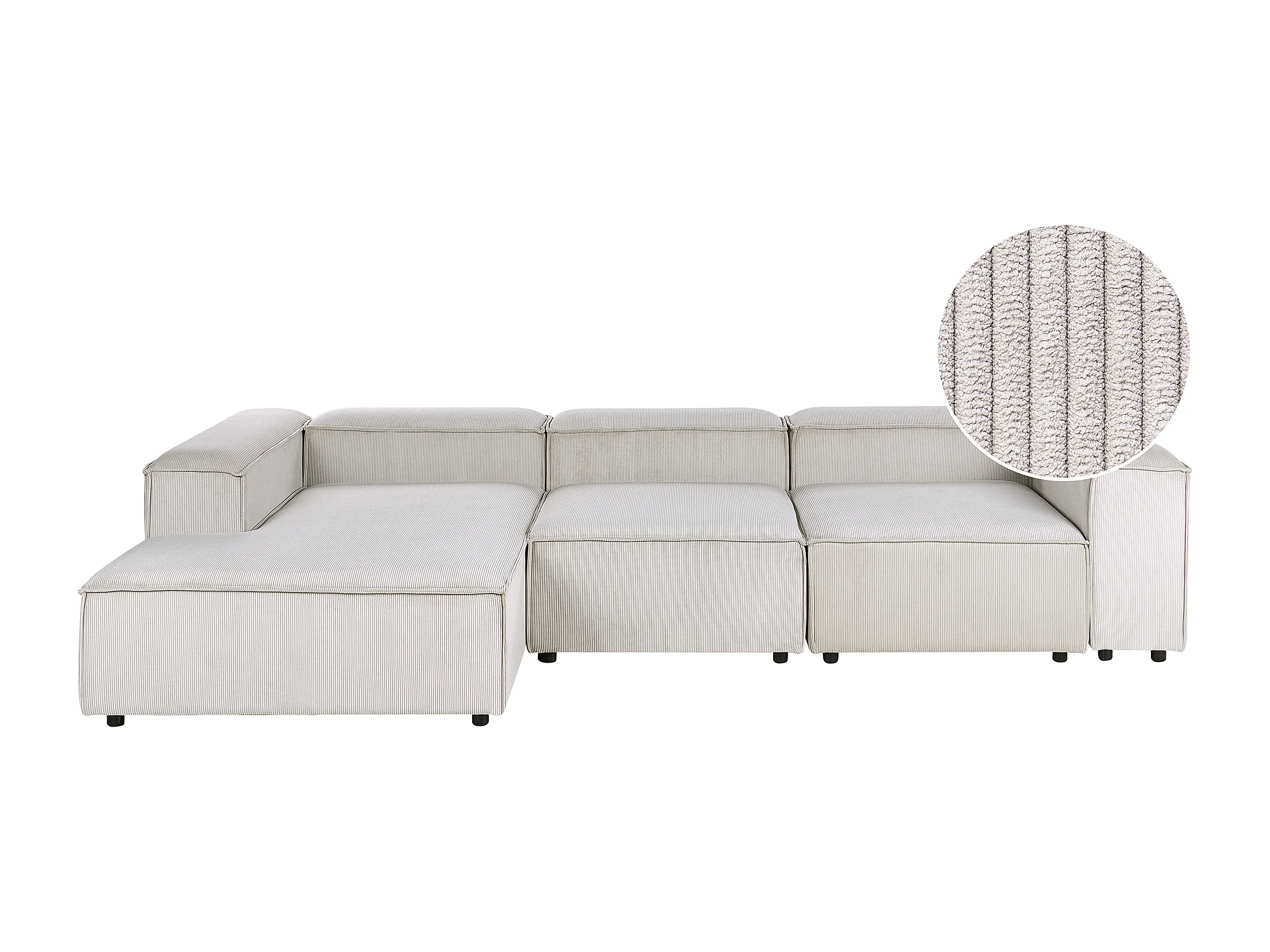 Canapé d'Angle à gauche en Velours Côtelé Modulaire 4 Places Pieds Noirs Taupe Ardal