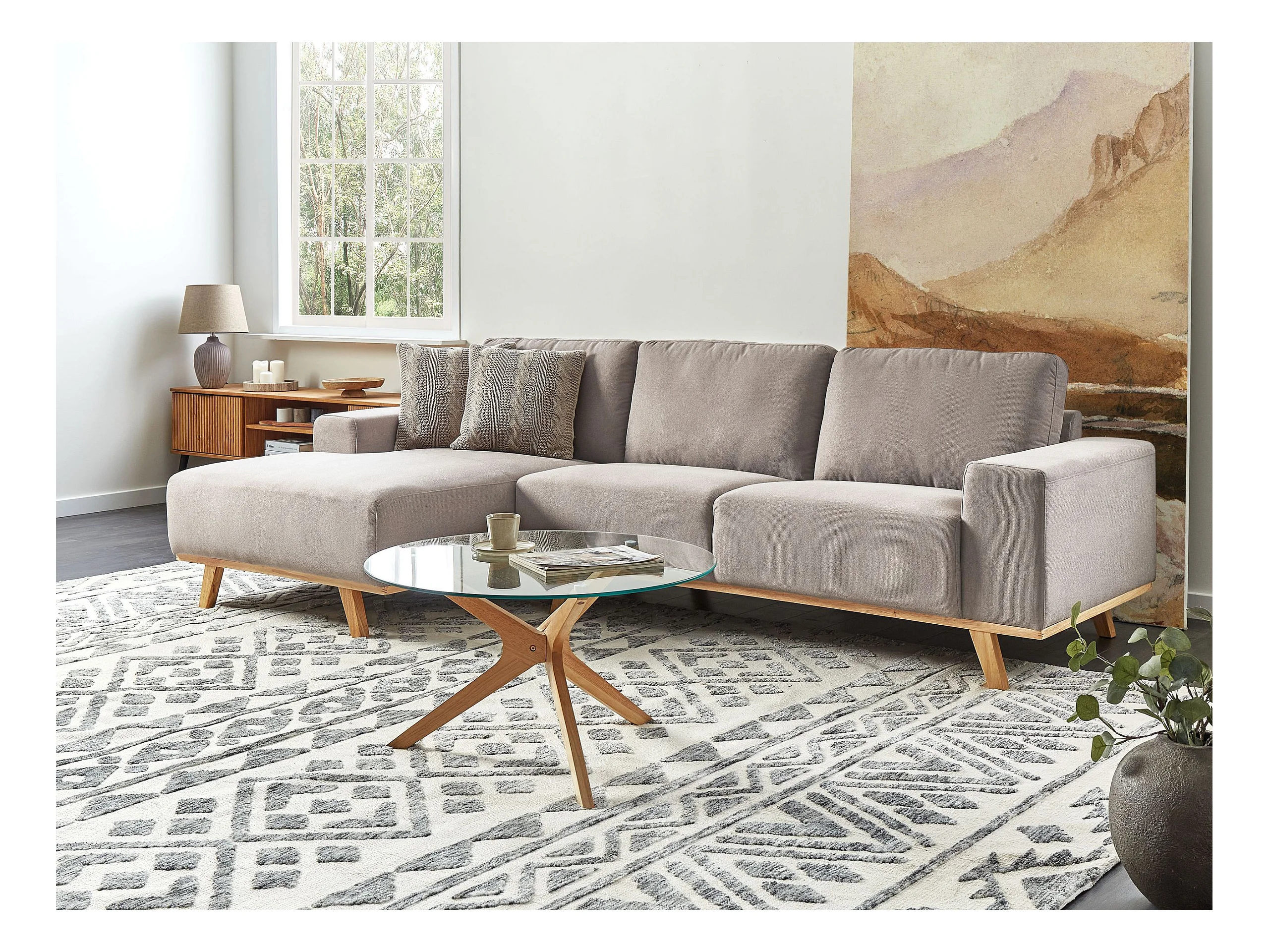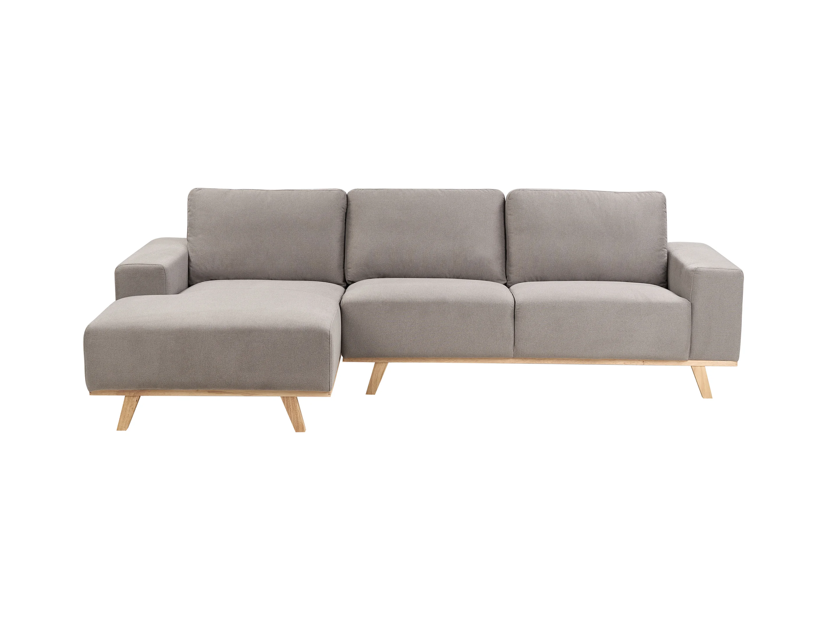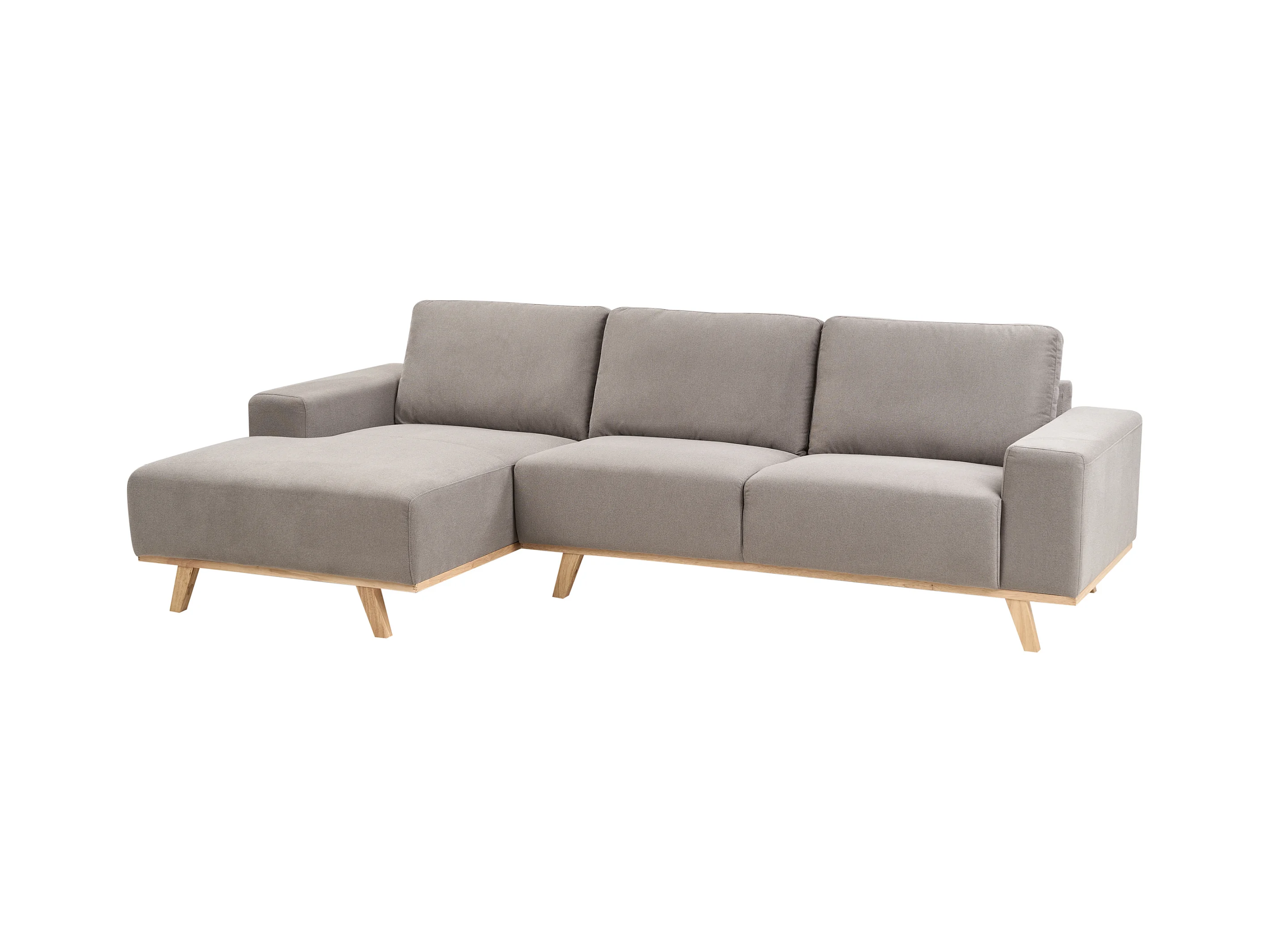 Canapé d'Angle à gauche Moderne en Tissu Polyester Pieds en Bois Clair Dossier avec Coussin Taupe Nora
