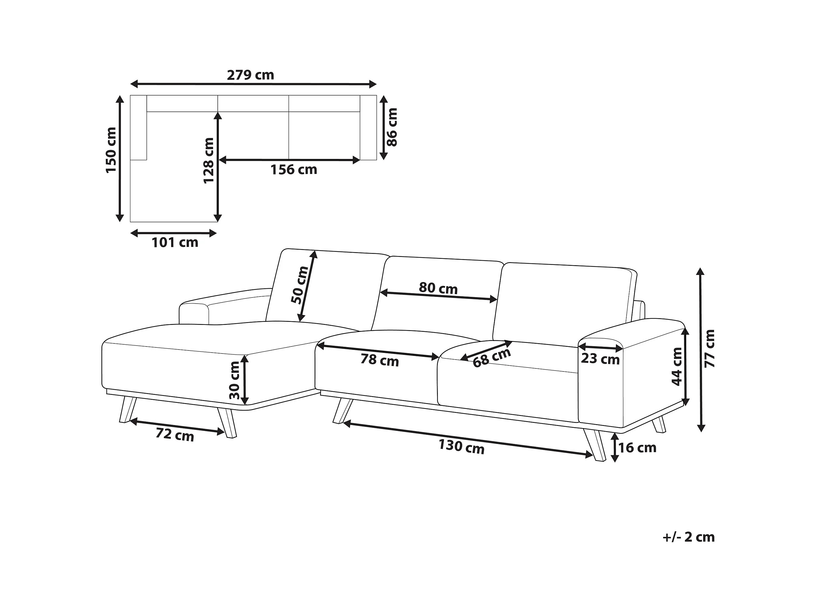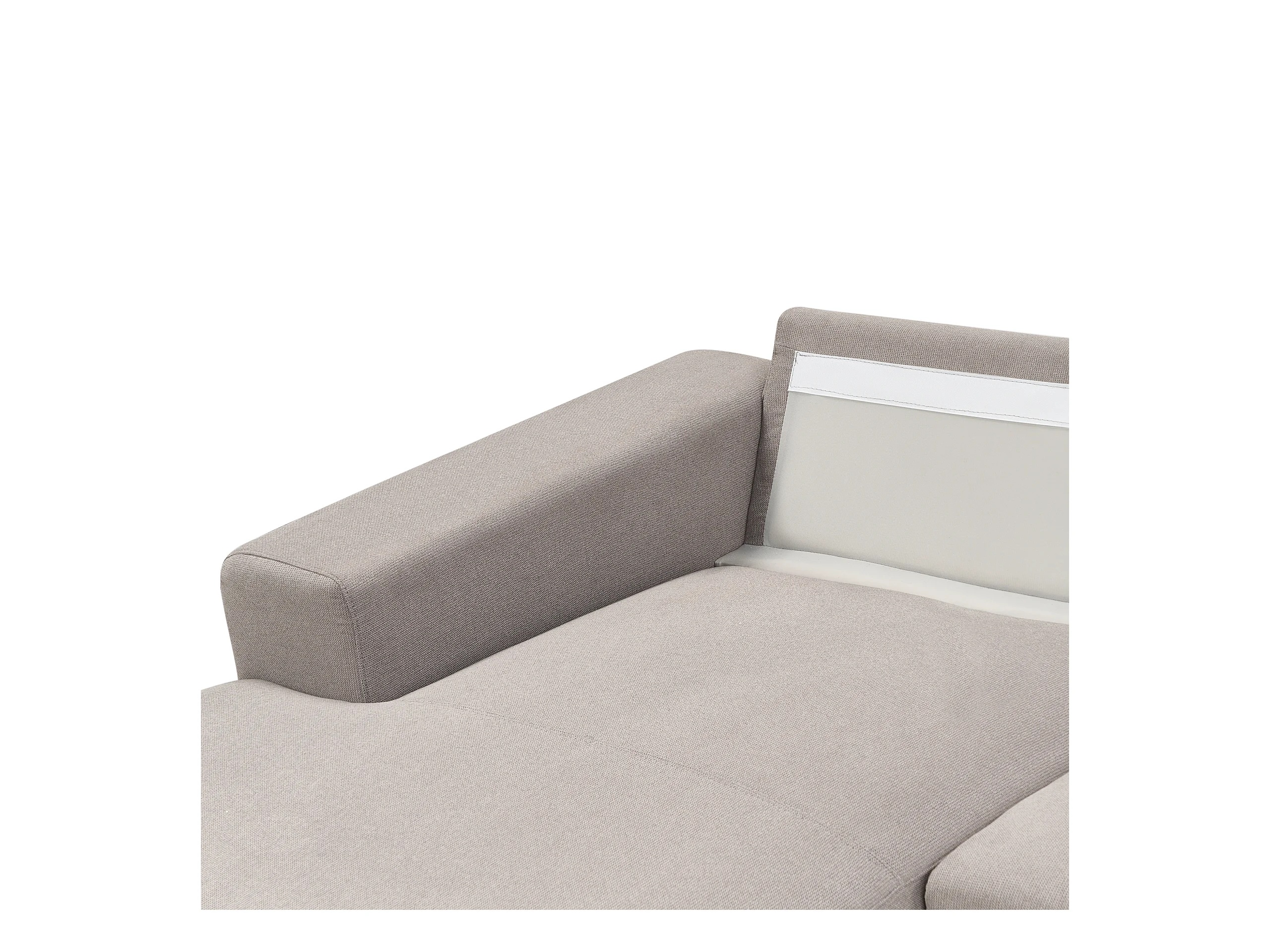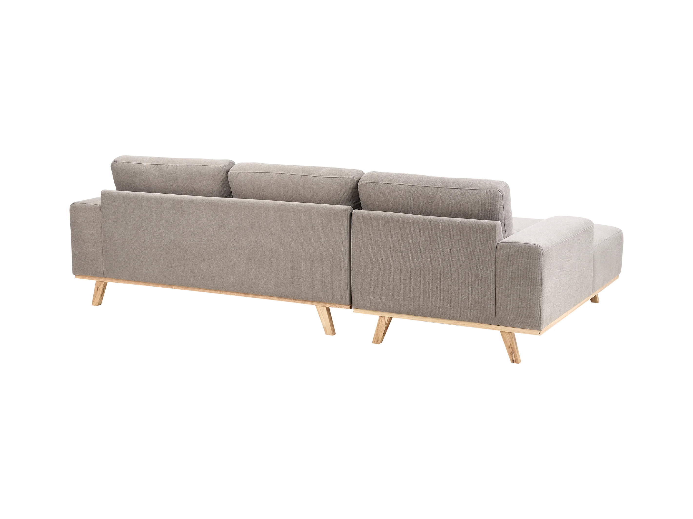 Canapé d'Angle à gauche Moderne en Tissu Polyester Pieds en Bois Clair Dossier avec Coussin Taupe Nora