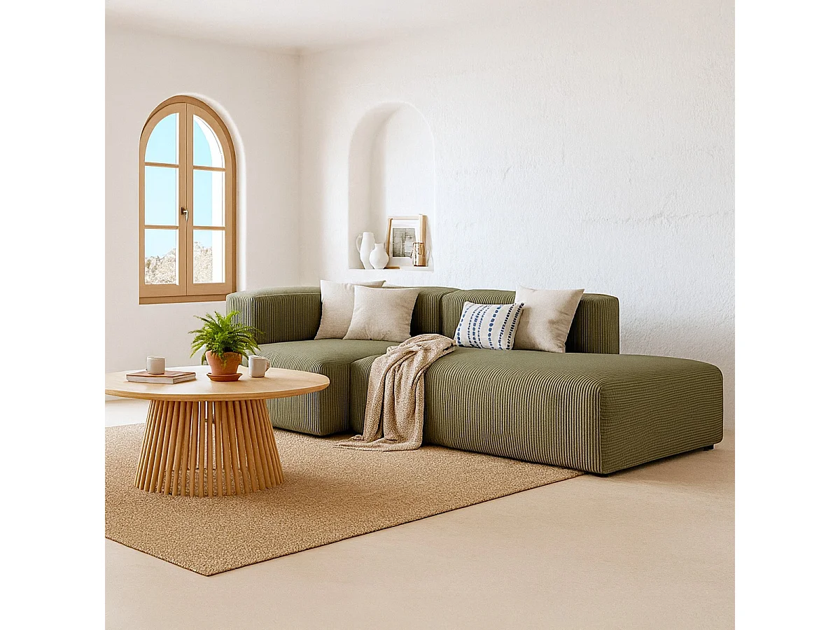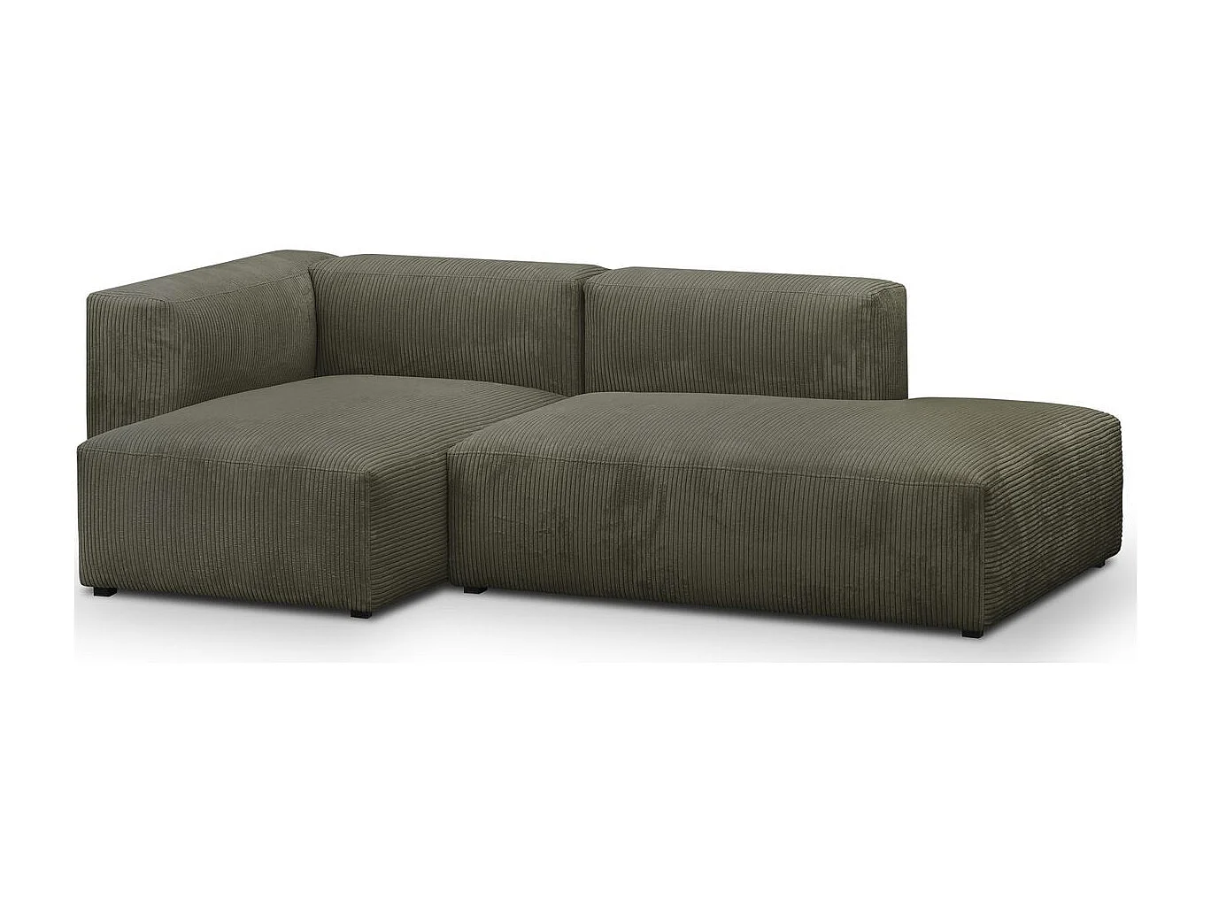 Canapé d'angle à gauche modulable avec méridienne 3/4 places en velours côtelé vert kaki - Modulo