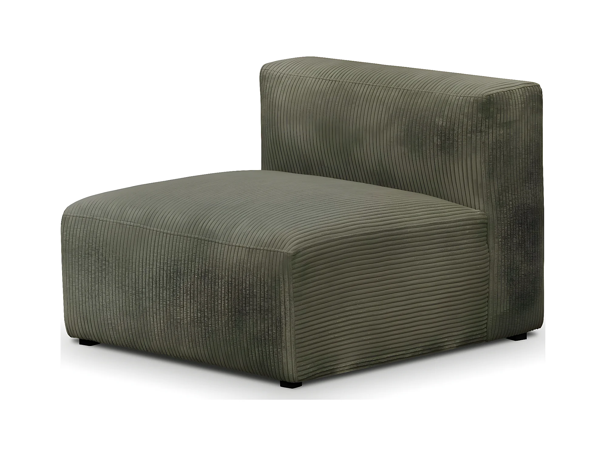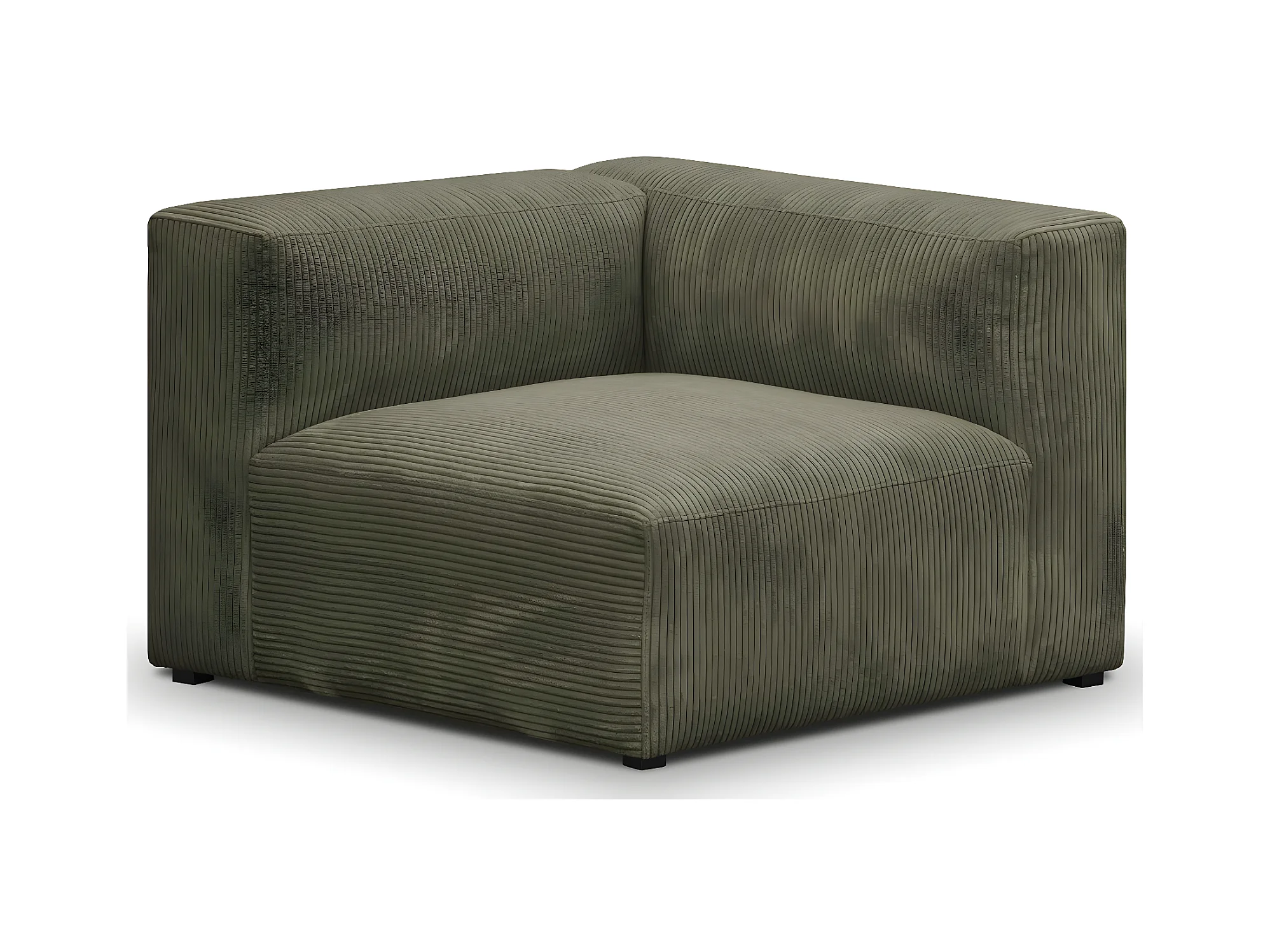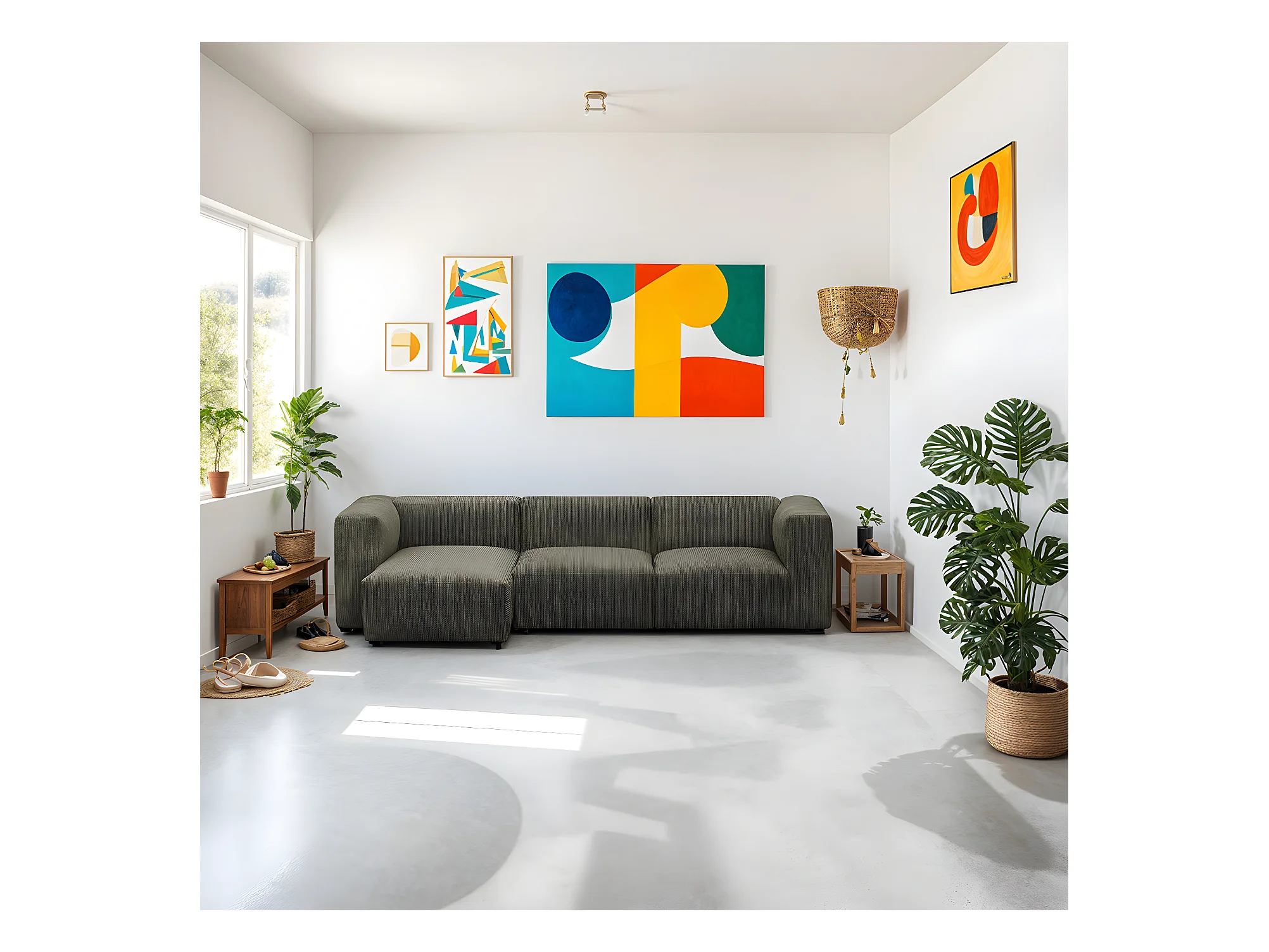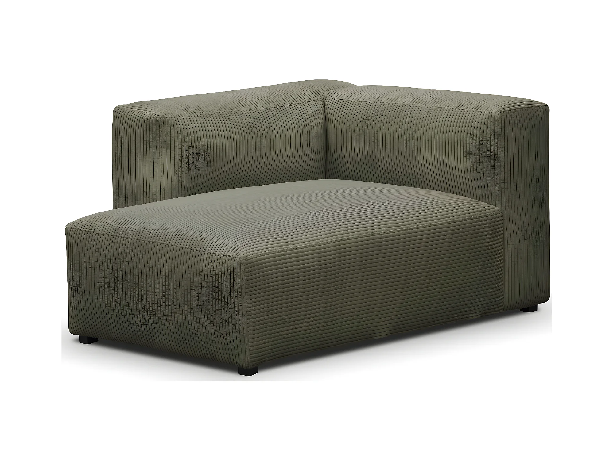 Canapé d'angle à gauche modulable avec méridienne 4 places en velours côtelé vert kaki - Modulo