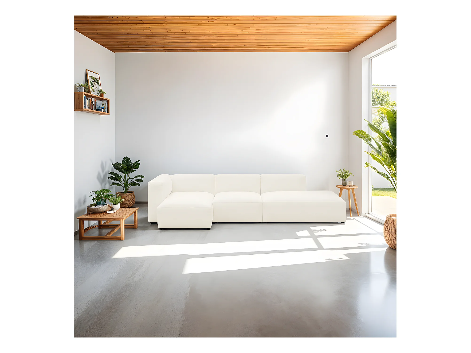 Canapé d'angle à gauche modulable avec méridienne 5 places en tissu bouclé beige - Modulo