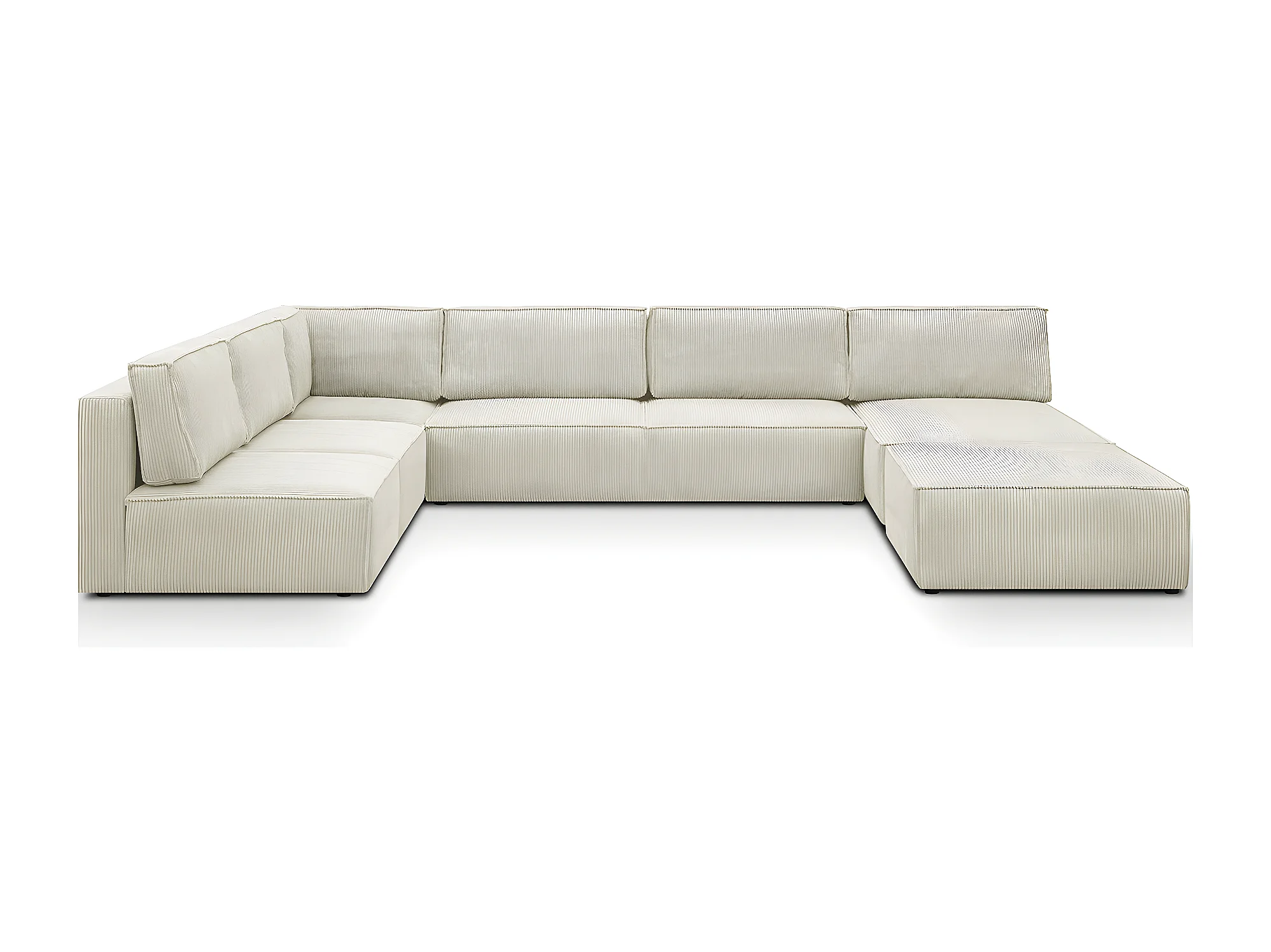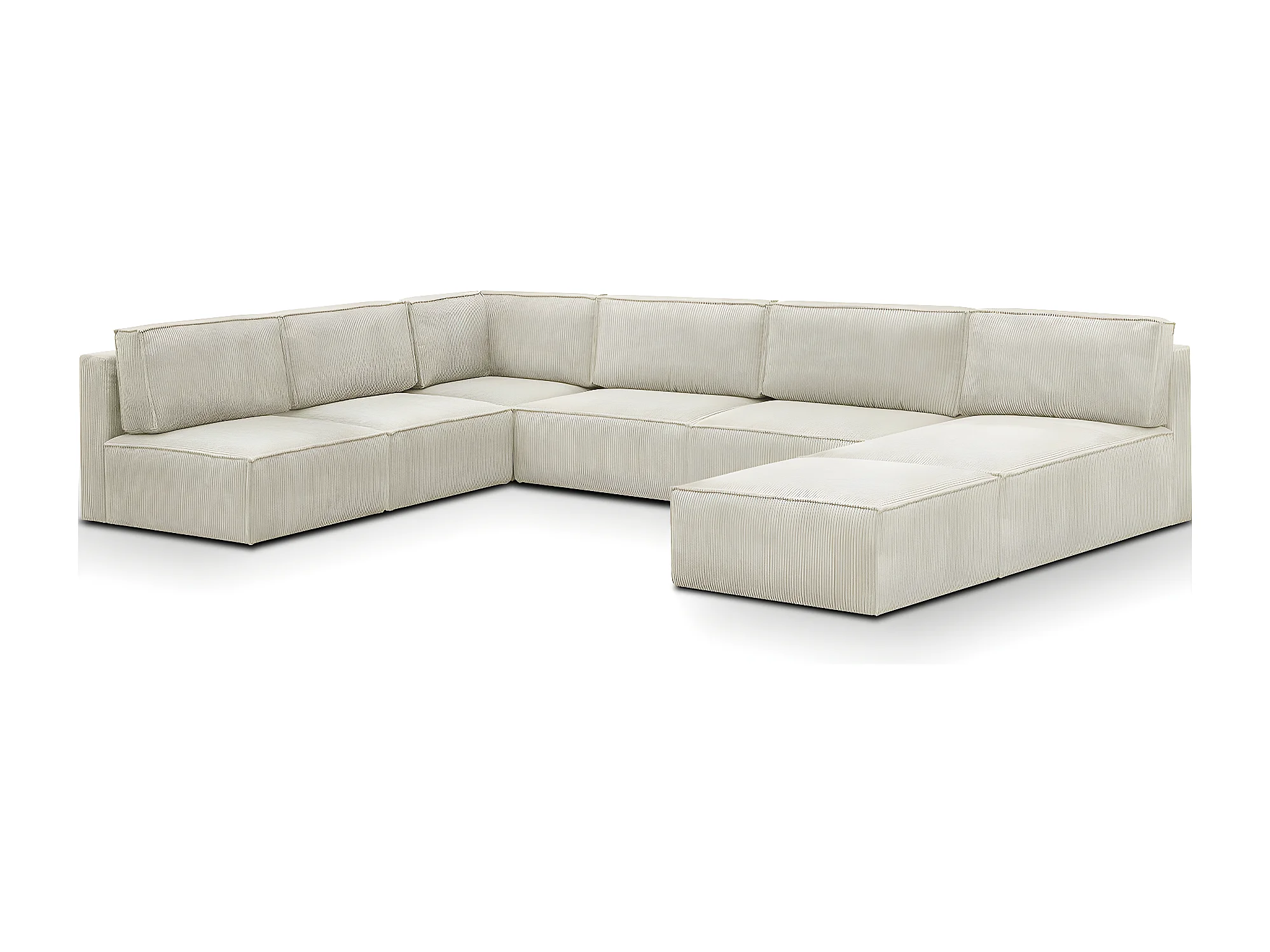 Canapé d'angle à gauche panoramique modulable convertible 10 places avec pouf en velours côtelé beige - Harper Mod