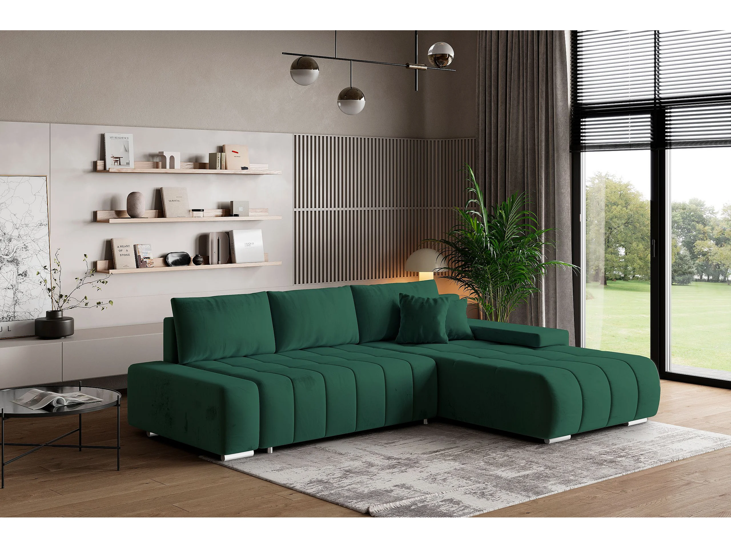 Canapé d'angle ALESE Vert Sapin en velours avec fonction de couchage