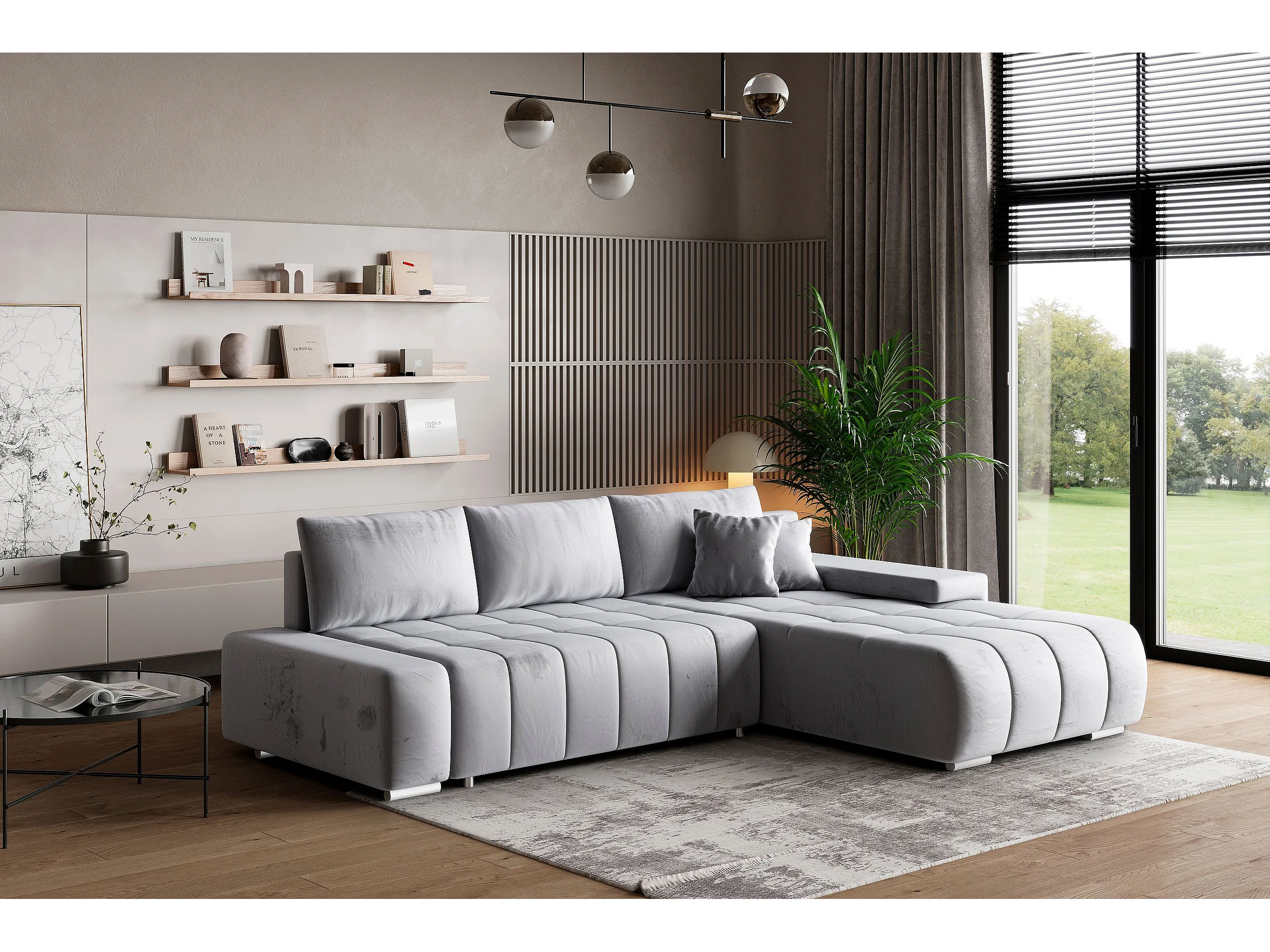 Canapé d'angle ALESE Gris clair en velours avec fonction de couchage