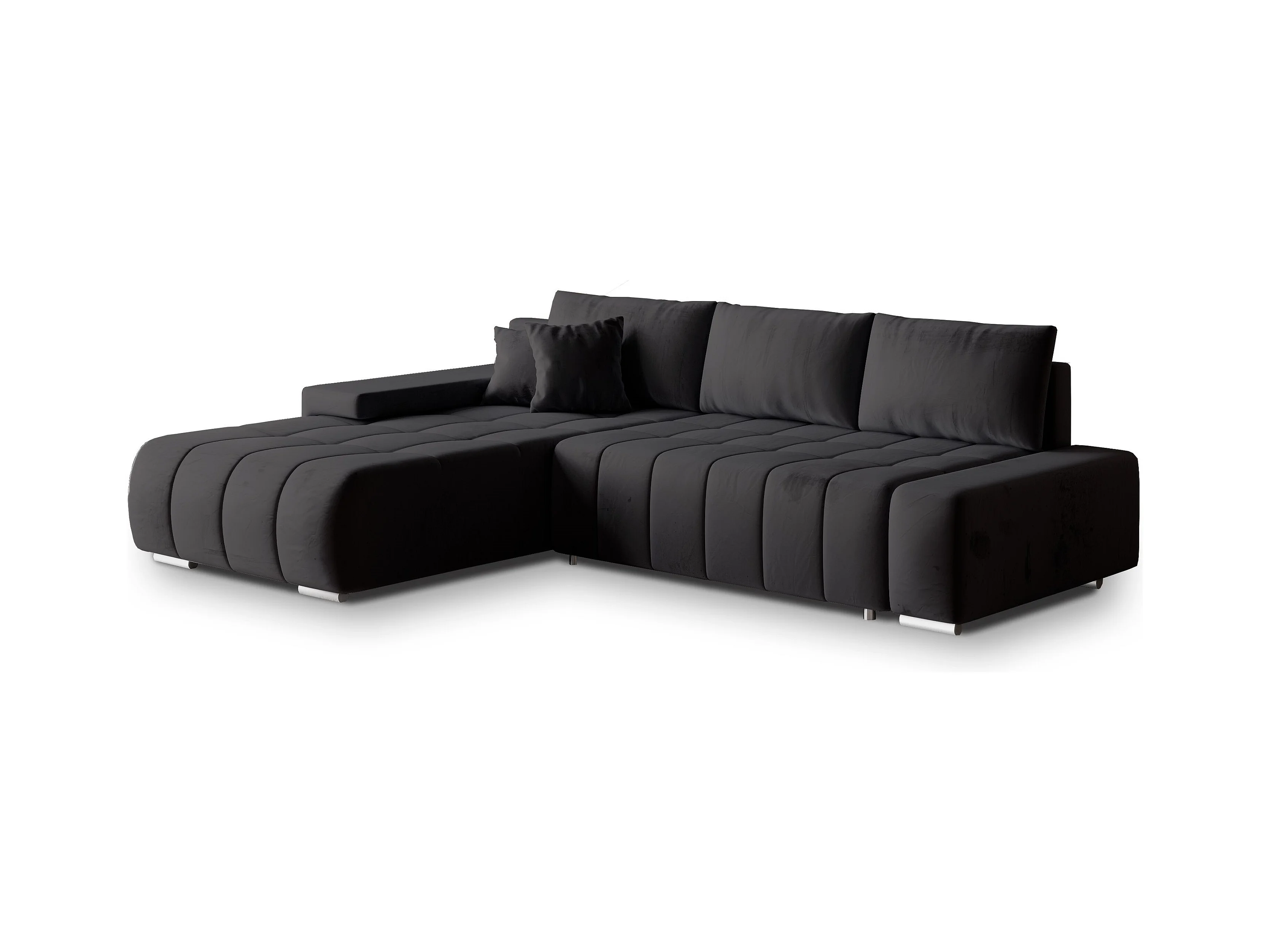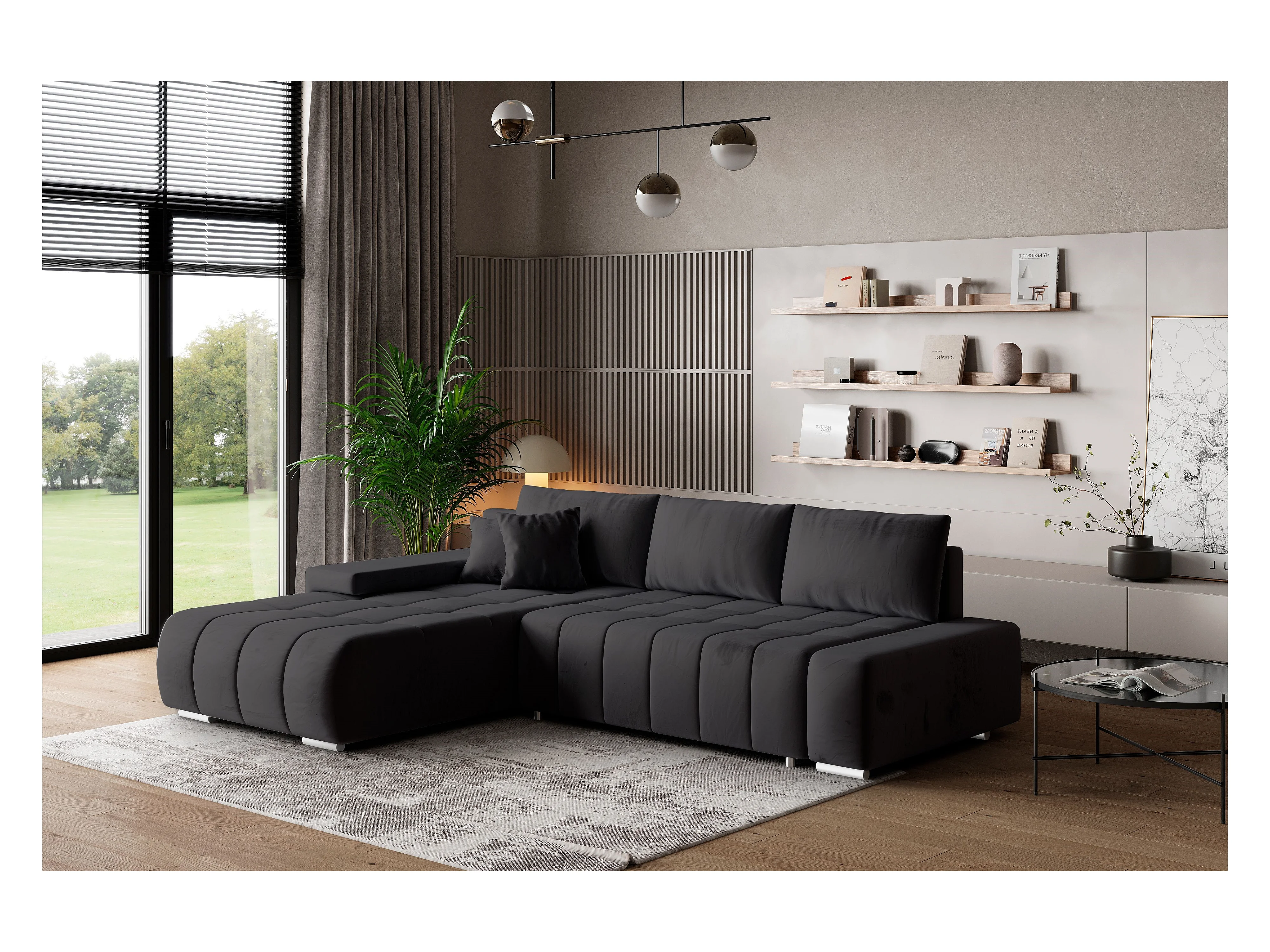 Canapé d'angle ALESE Noir en velours avec fonction de couchage