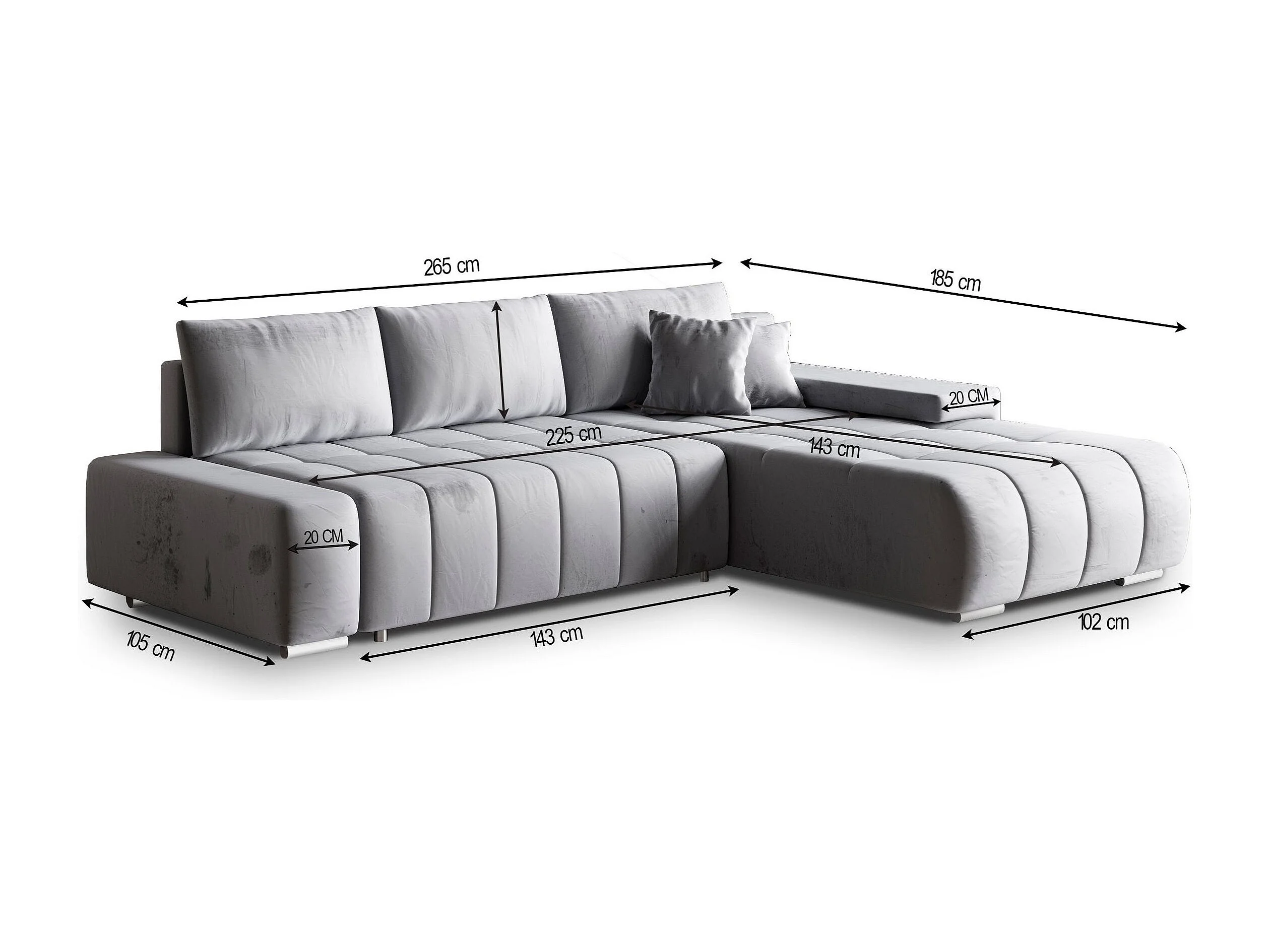 Canapé d'angle ALESE Parme en velours avec fonction de couchage