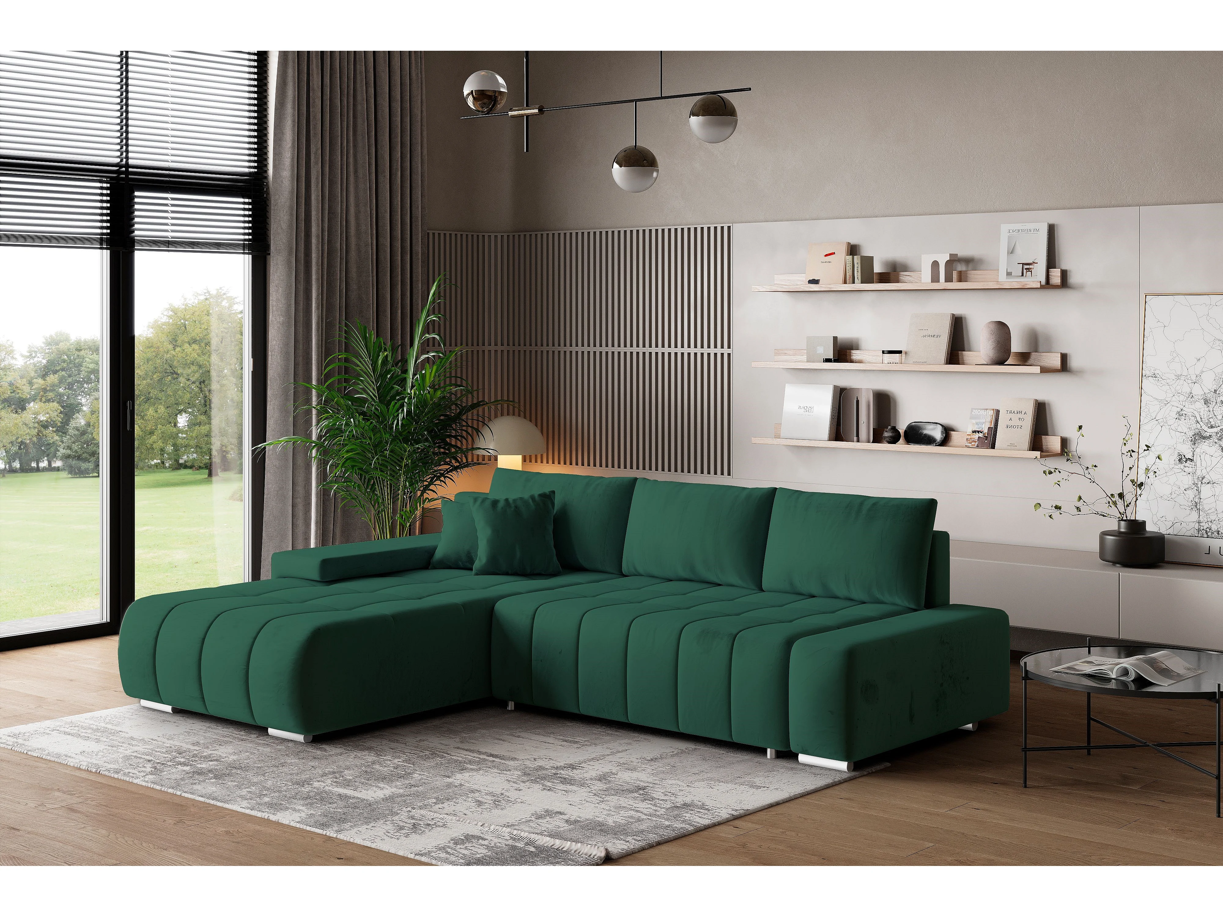 Canapé d'angle ALESE Vert Sapin en velours avec fonction de couchage