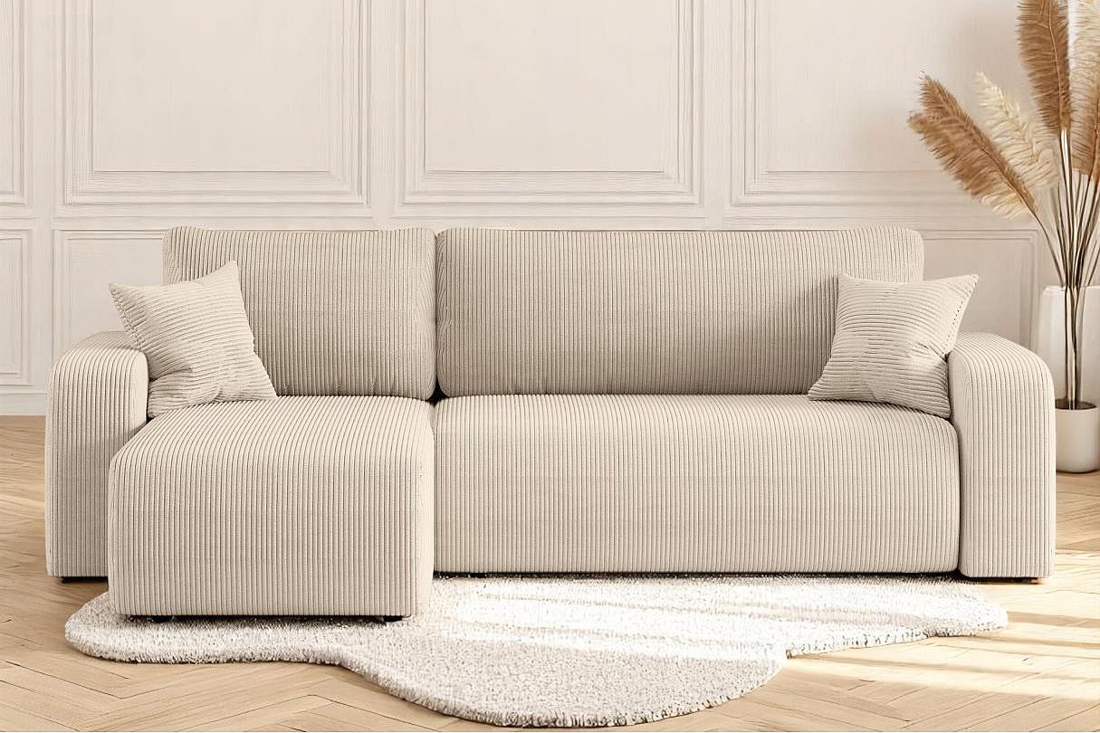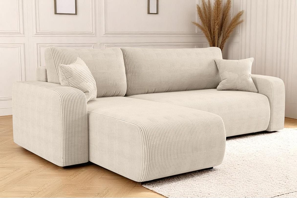 Canapé d'angle ALYA convertible et réversible 4 places en velours cotelé - Beige