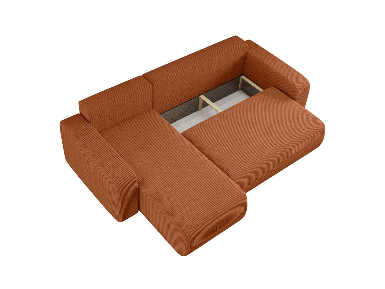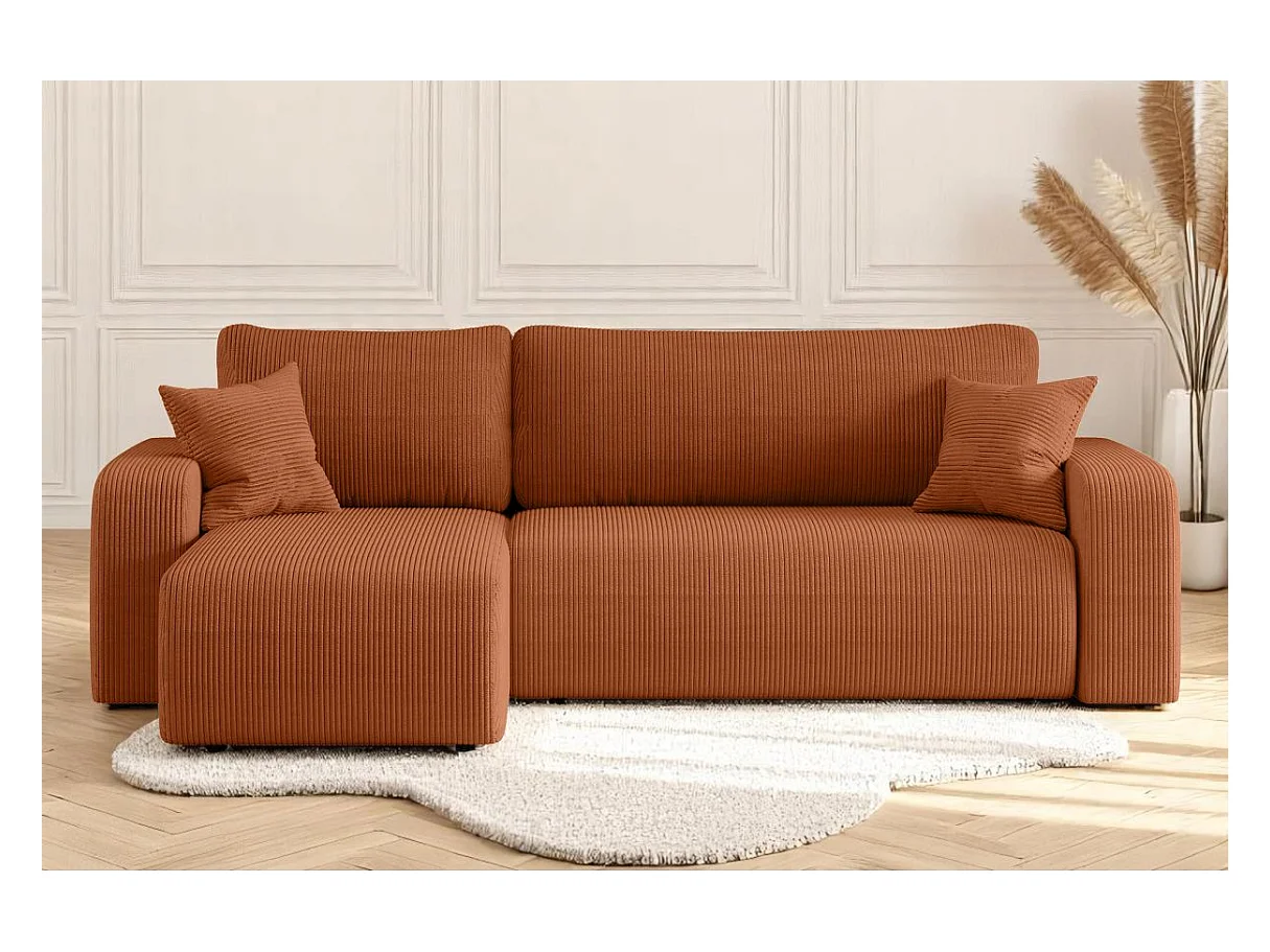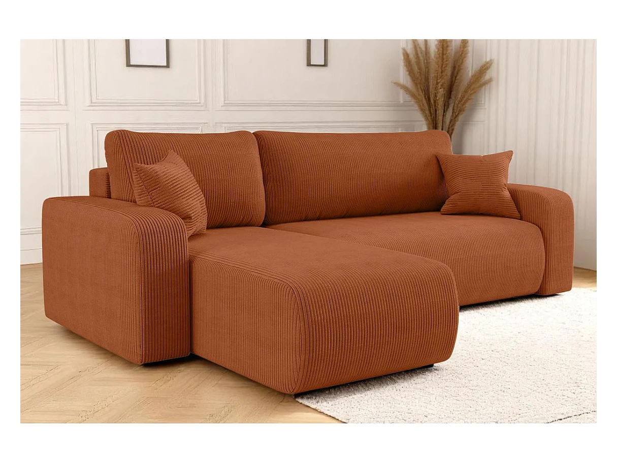 Canapé d'angle ALYA convertible et réversible 4 places en velours cotelé - Terracotta