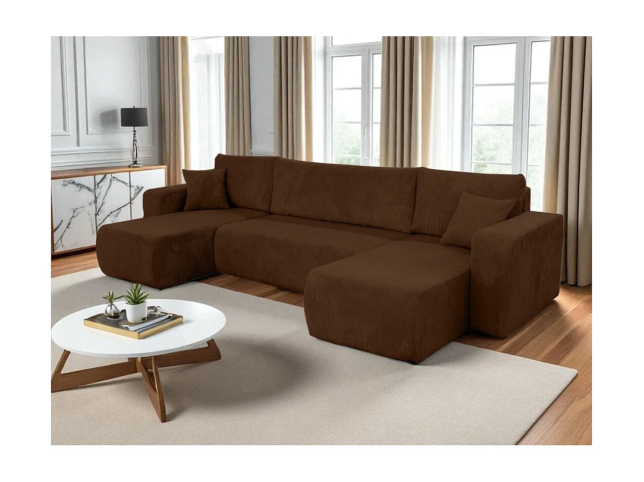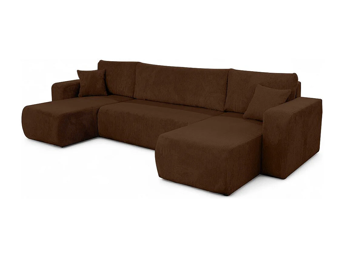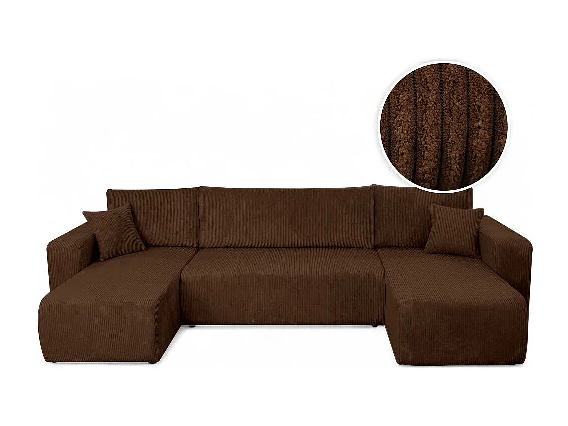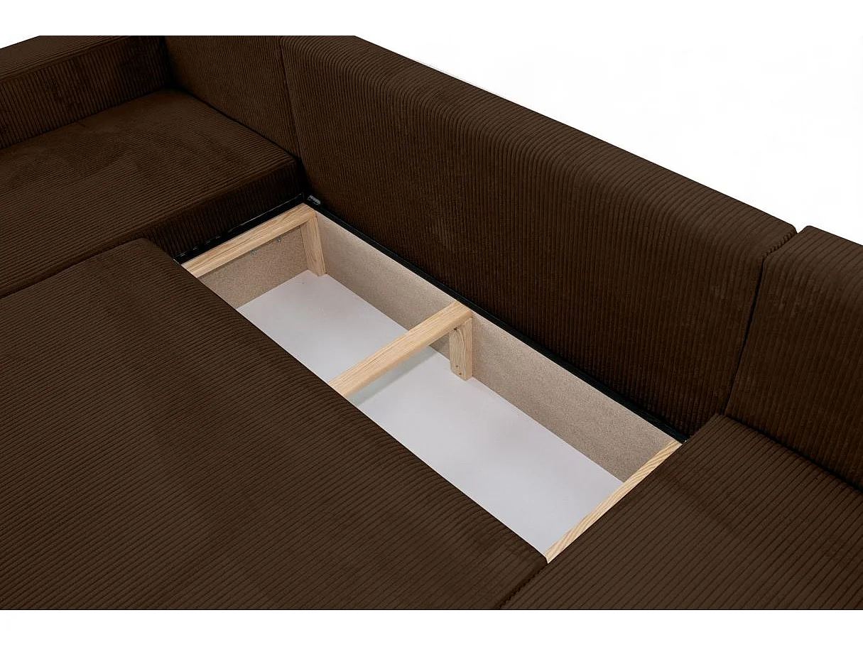 Canapé d'angle ALYA panoramique convertible 6 places en velours cotelé - Marron