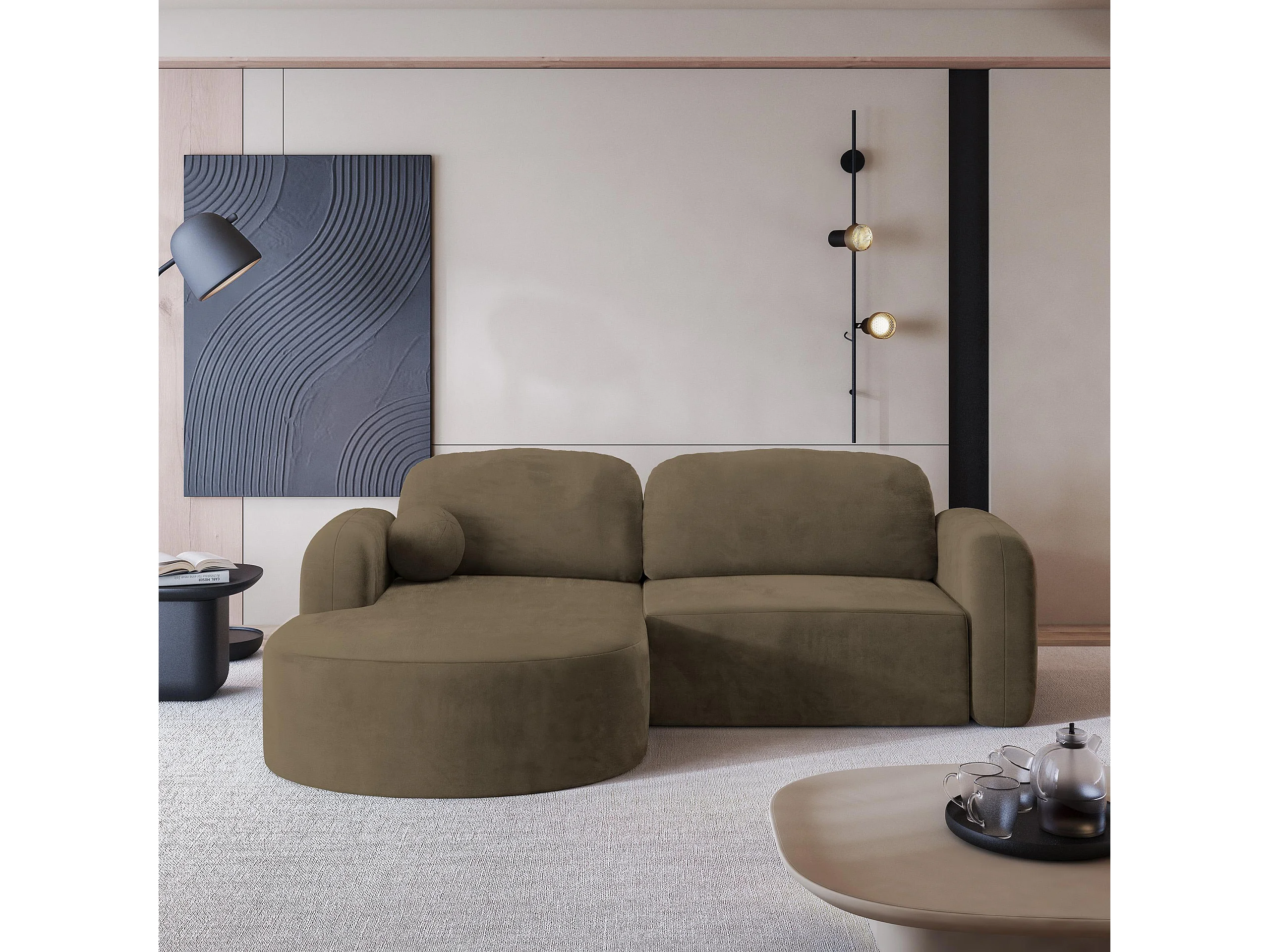 Canapé d'angle AMILIA Beige en velours avec fonction de couchage