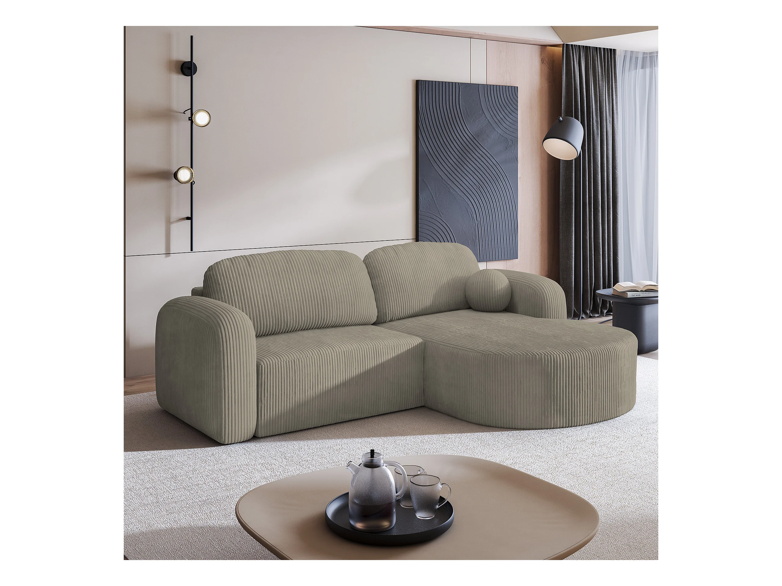 Canapé d'angle AMILIA Beige en velours côtelé avec fonction de couchage
