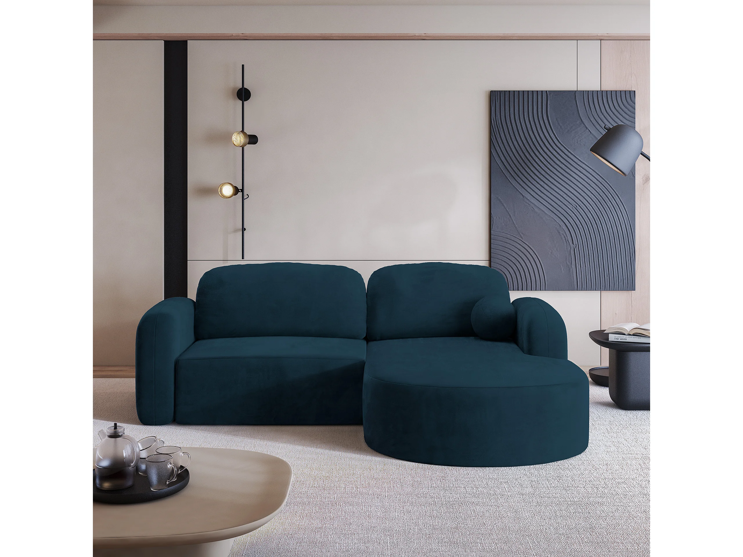 Canapé d'angle AMILIA Bleu en velours avec fonction de couchage
