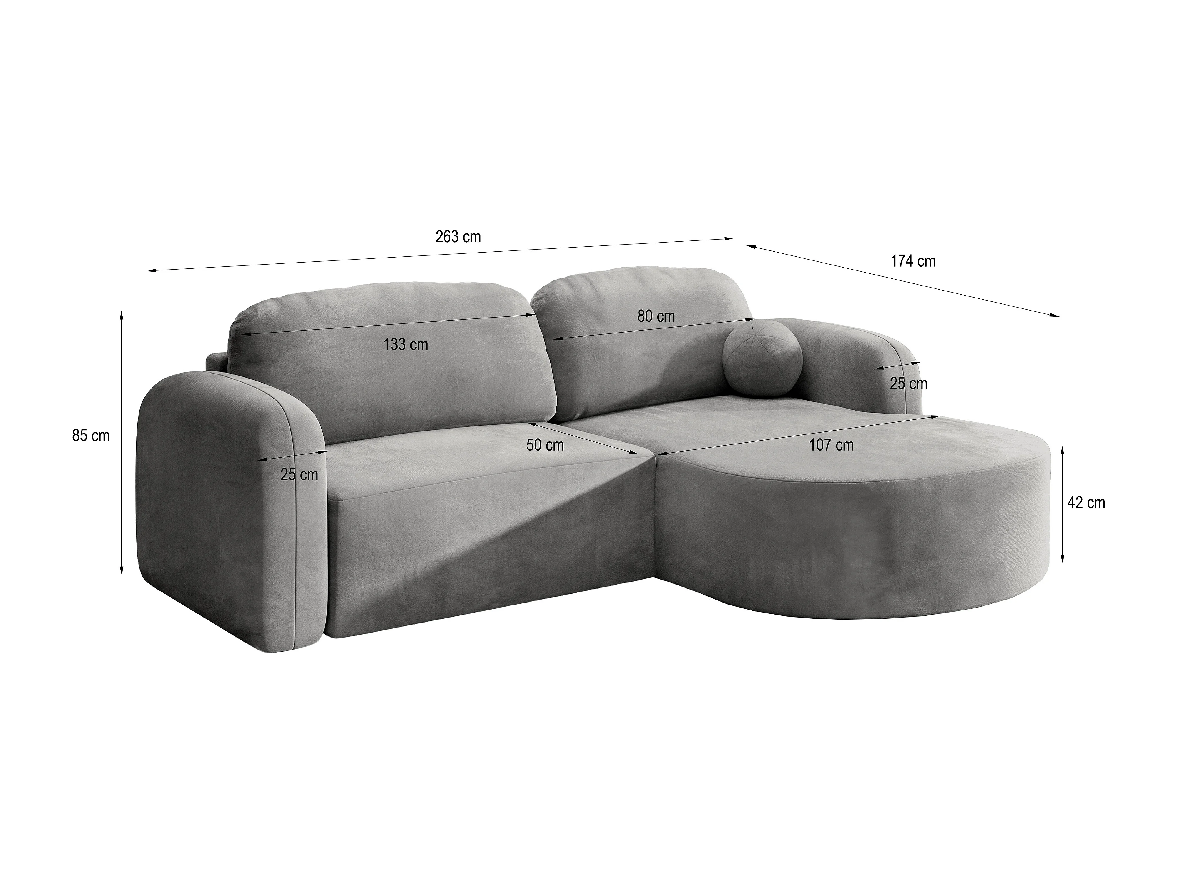 Canapé d'angle AMILIA Crème en velours avec fonction de couchage