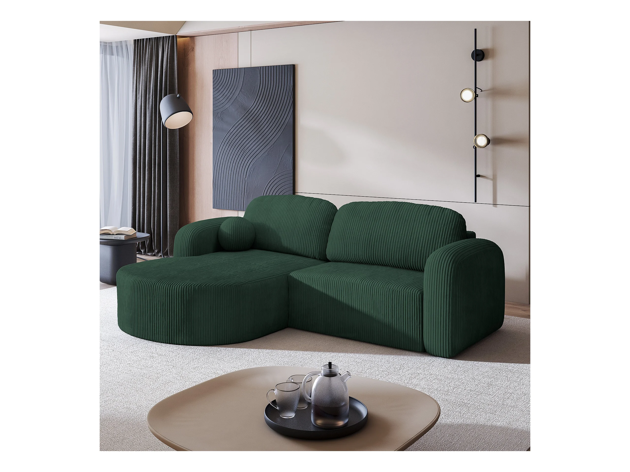 Canapé d'angle AMILIA Vert en velours côtelé avec fonction de couchage