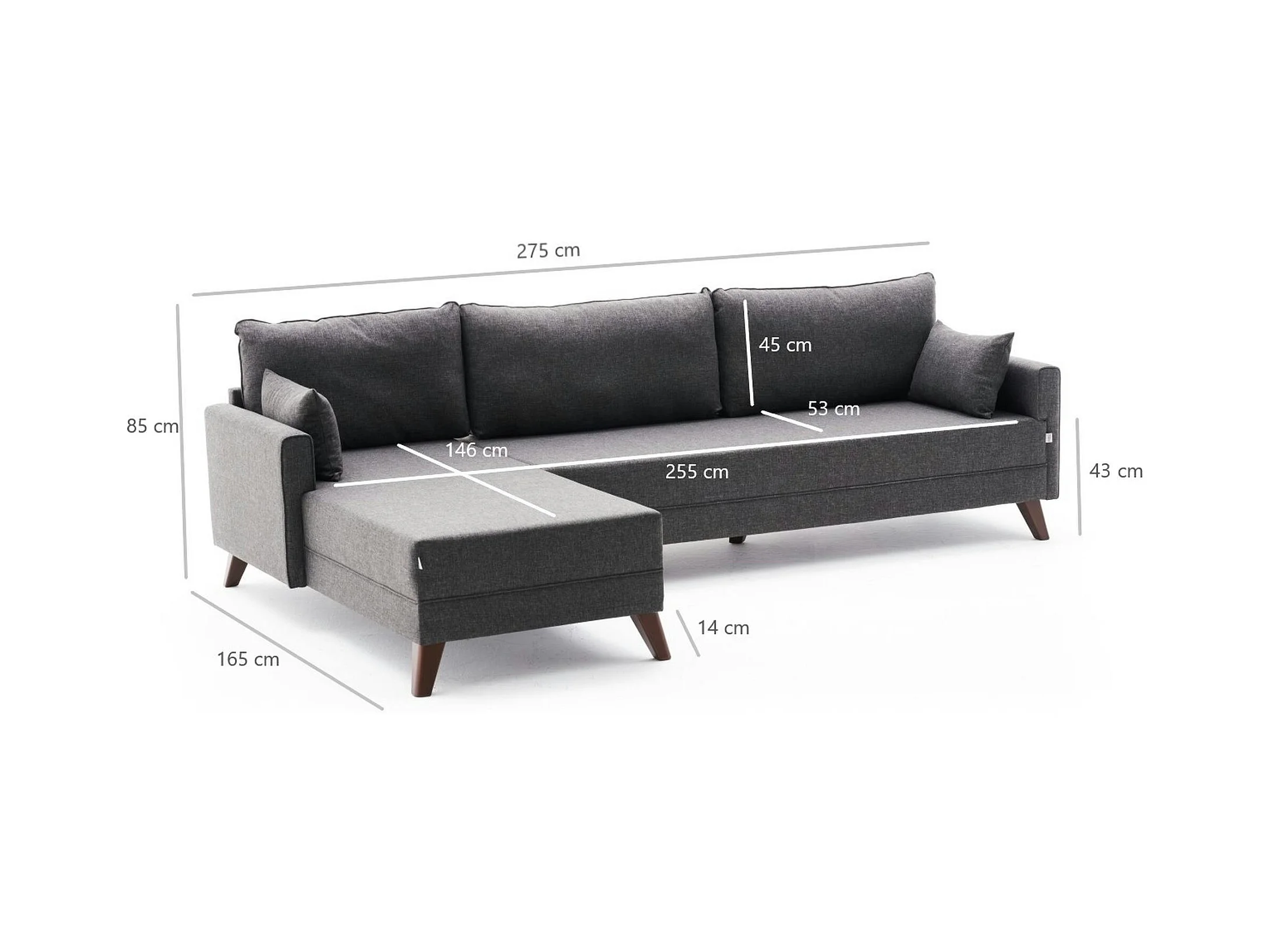 Canapé d'angle anthracite - 275 cm, côté gauche SPLIT