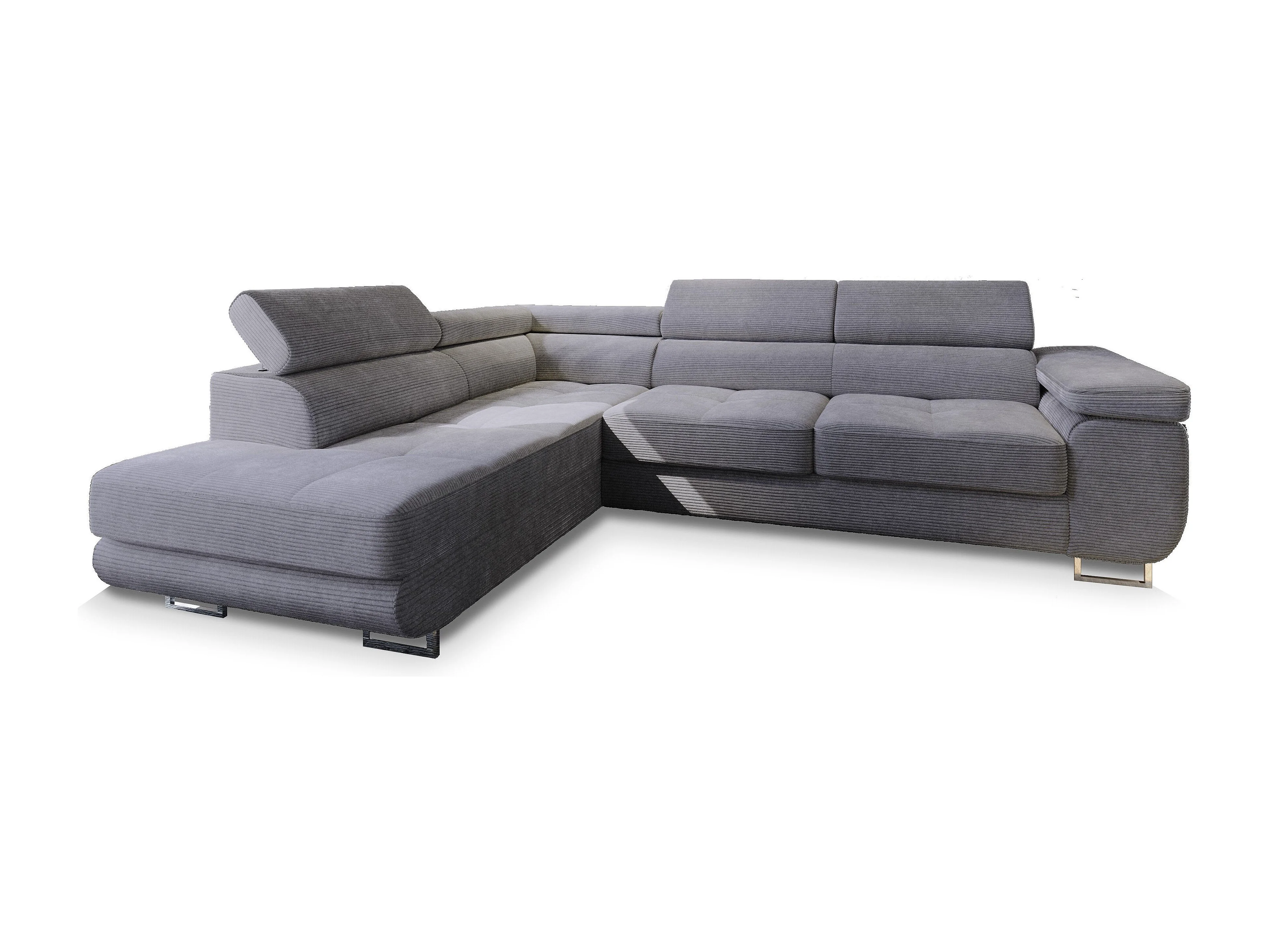 Canapé d'angle APIRO Gris en velours côtelé avec fonction de couchage