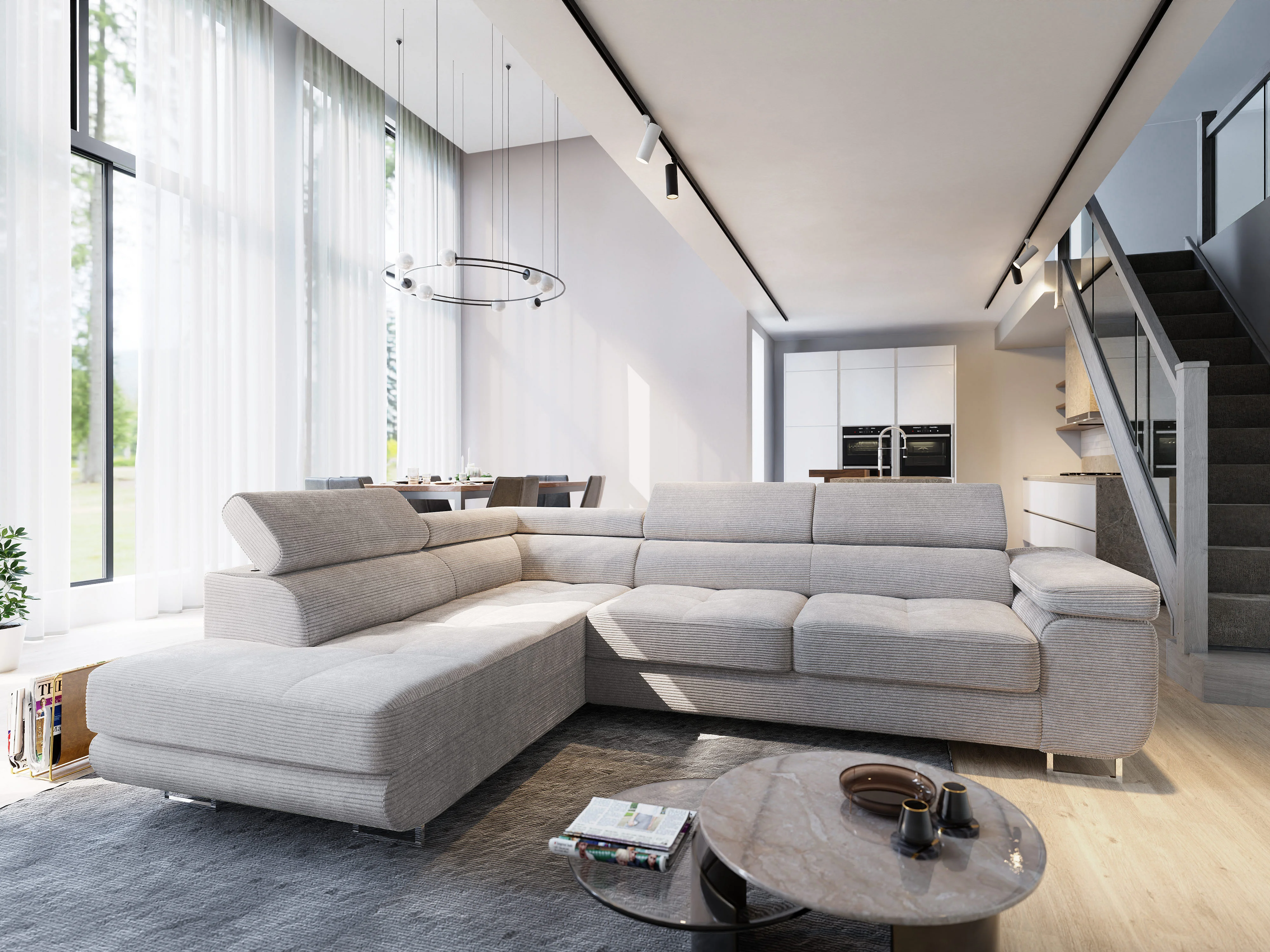 Canapé d'angle APIRO Crème en velours côtelé avec fonction de couchage