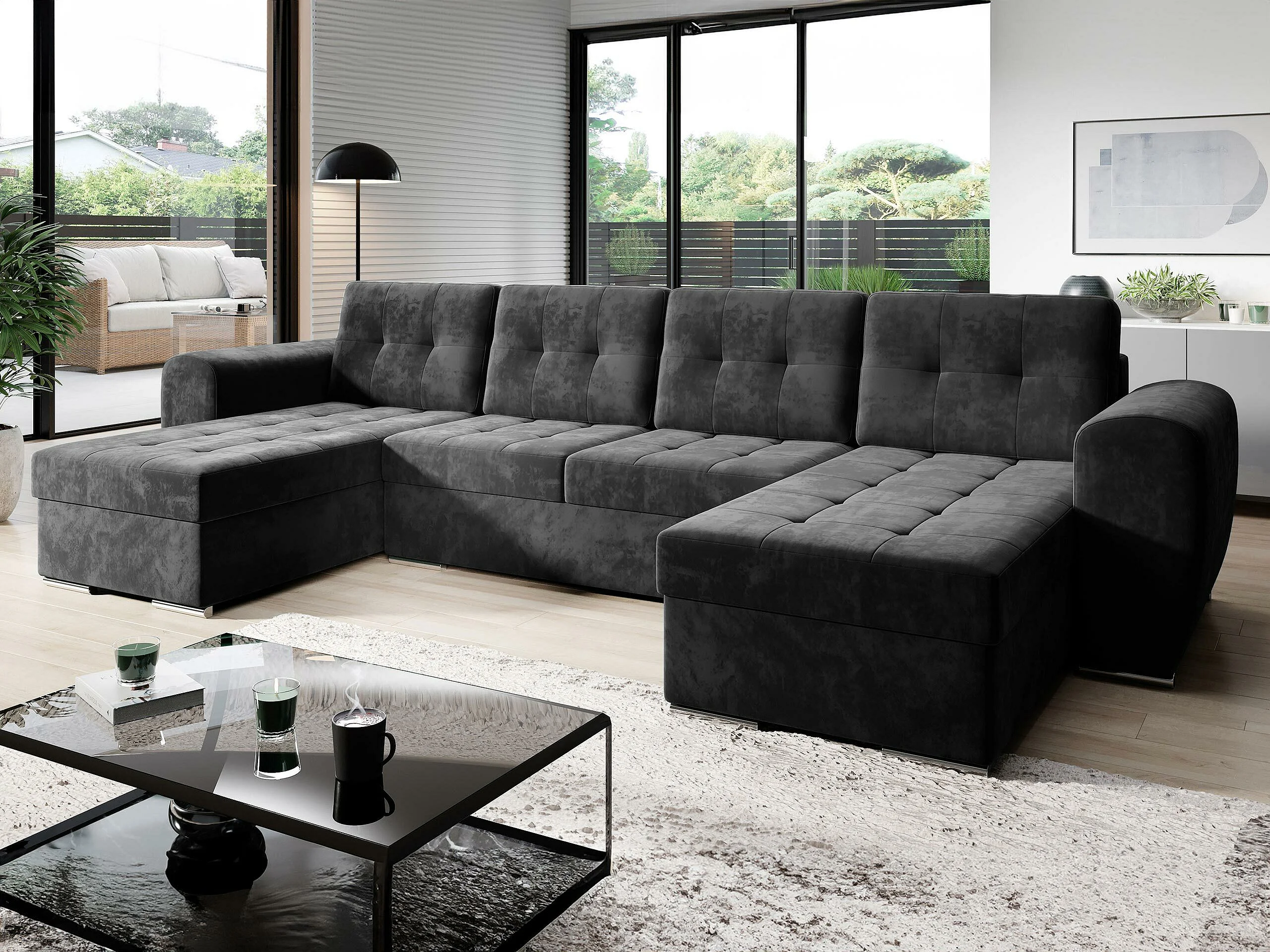 Canapé d'angle Arvada 117, Noir, Disponible, 326x157x86cm