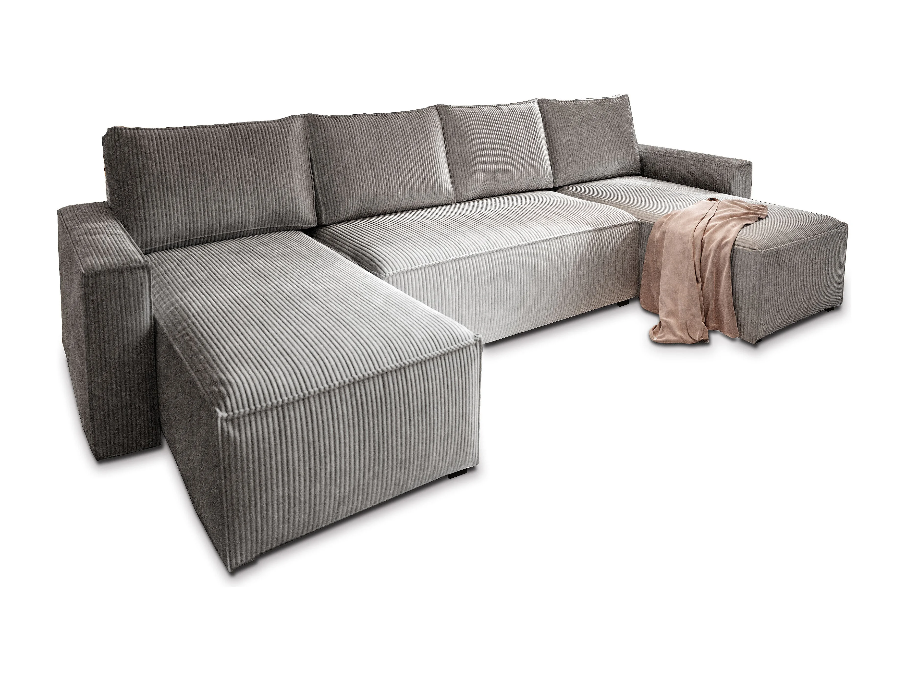 Canapé d'angle ASPRA Gris clair en velours côtelé avec fonction de couchage