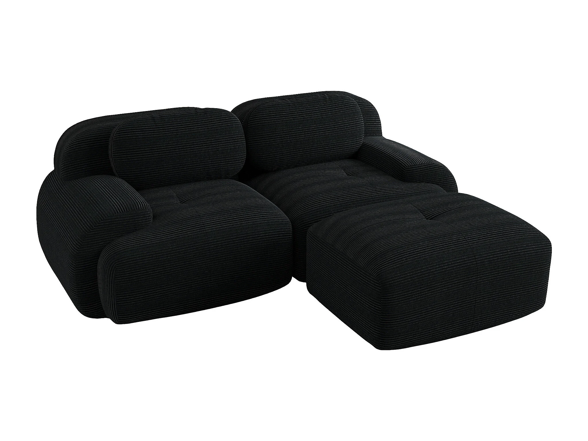 Canapé d'angle avec accoudoirs incurvés - Canapé 2 places avec dossier et coussins décoratifs - velours côtelé noir