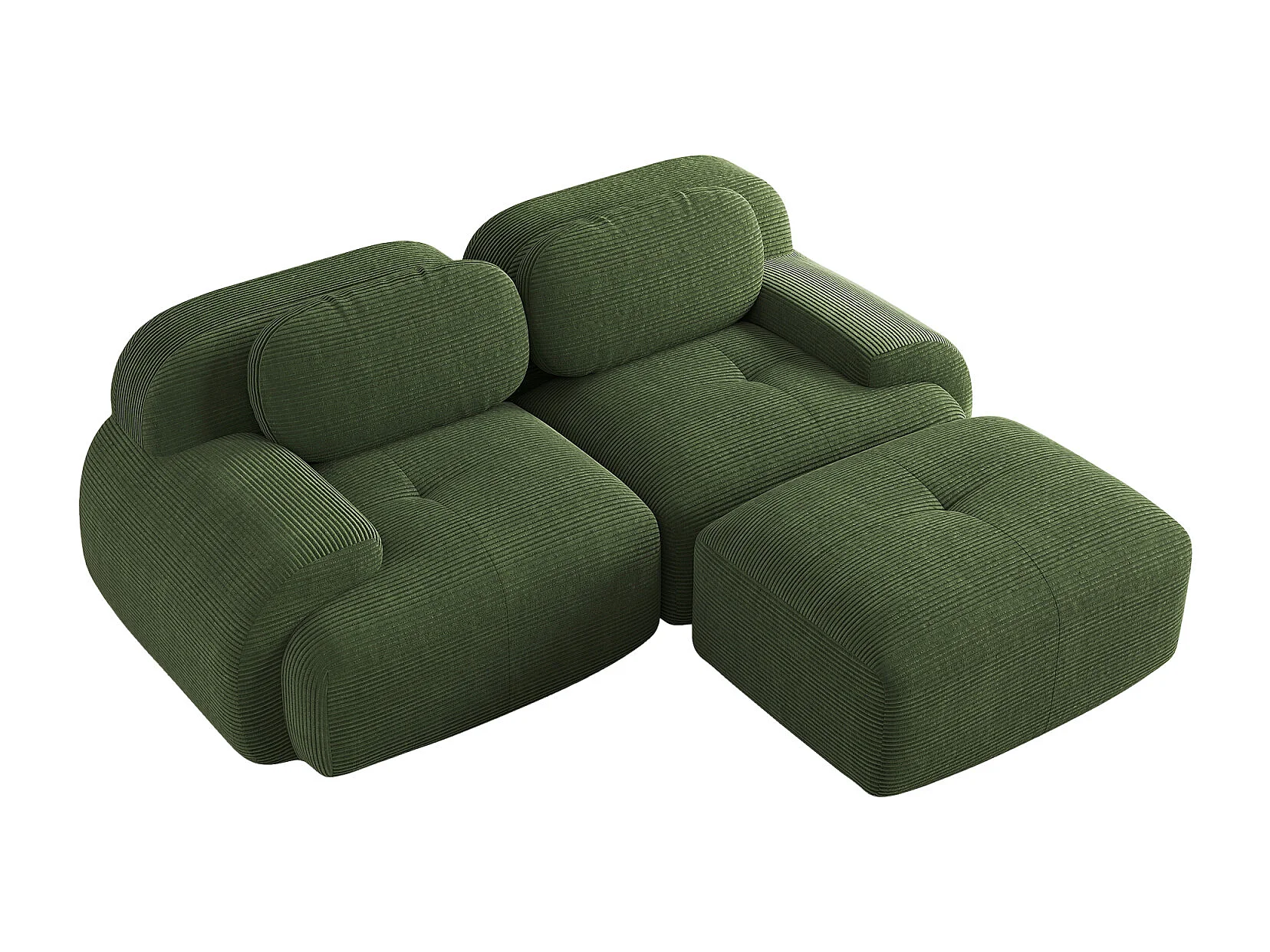 Canapé d'angle - avec accoudoirs incurvés - rembourrage en mousse haute élasticité - velours côtelé - vert