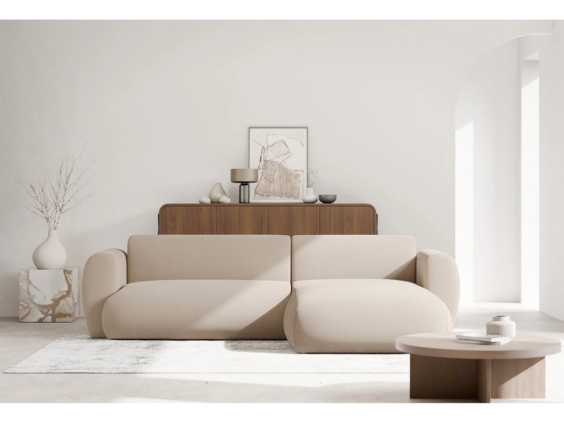 Canapé d’angle avec chenille facile d’entretien – couchage – Crème – droit – EMIA