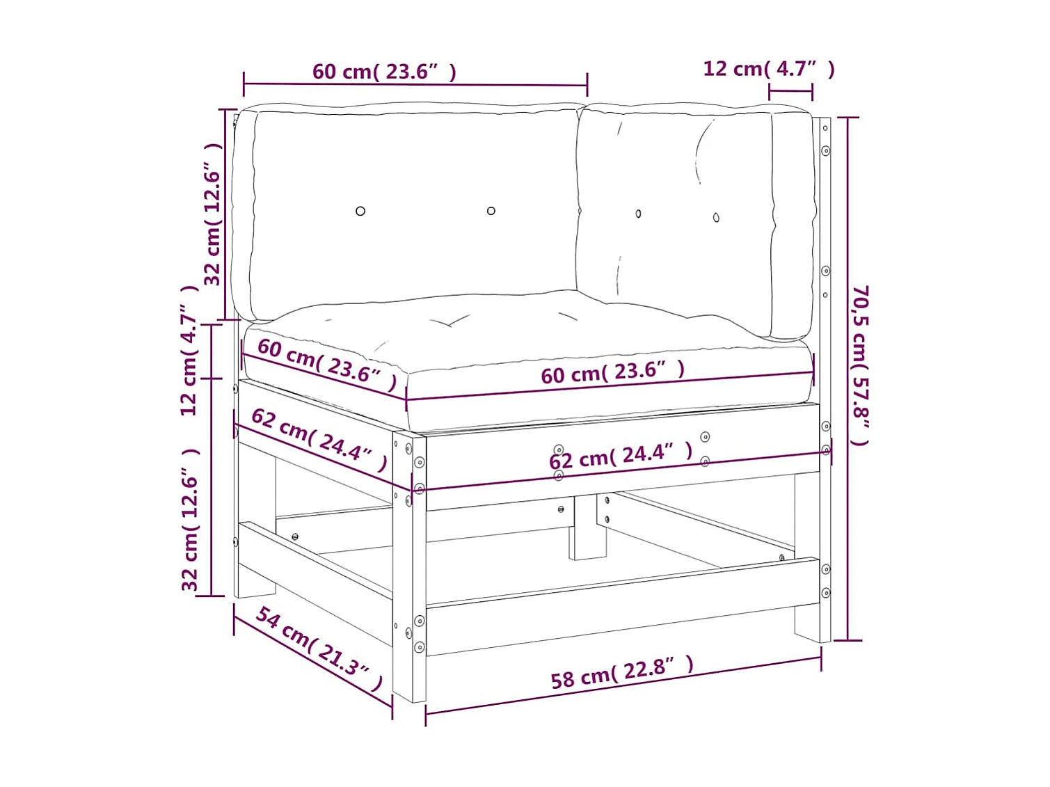 Canapé d'angle palette de jardin avec coussins Épicéa imprégné