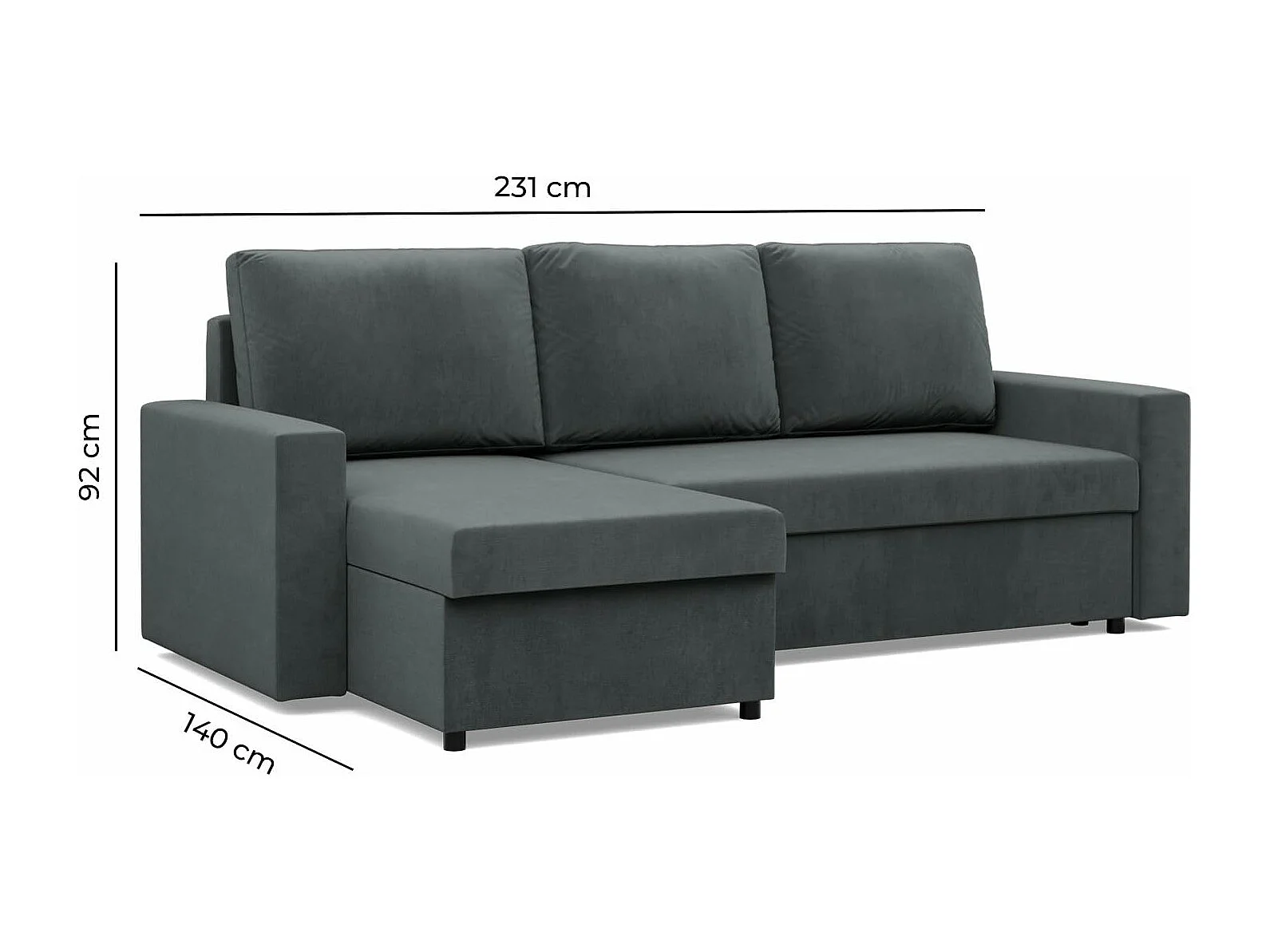 Canapé d'angle avec fonction couchage, Bonell, Bleu foncé
