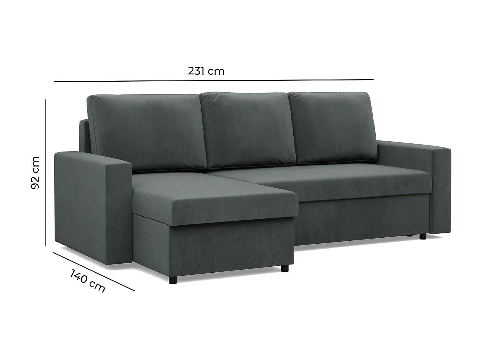 Canapé d'angle avec fonction couchage, Bonell, Noir