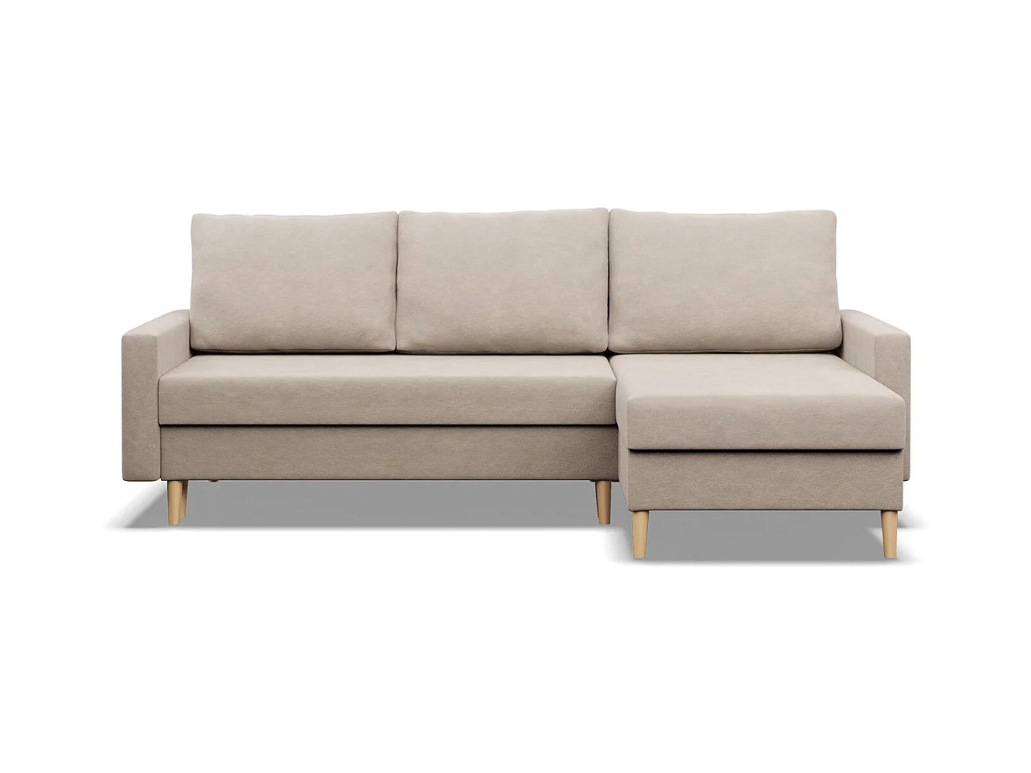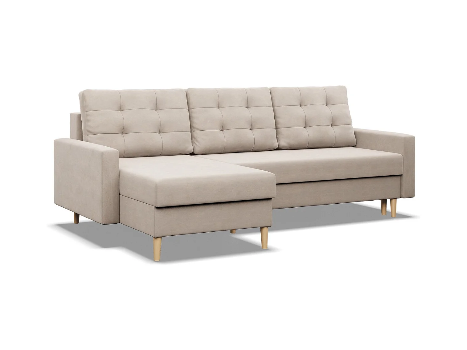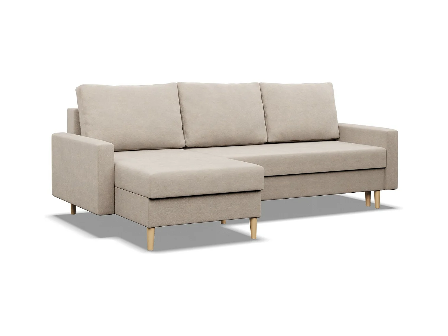 Canapé d'angle avec fonction couchage, Coussin réversible, Beige