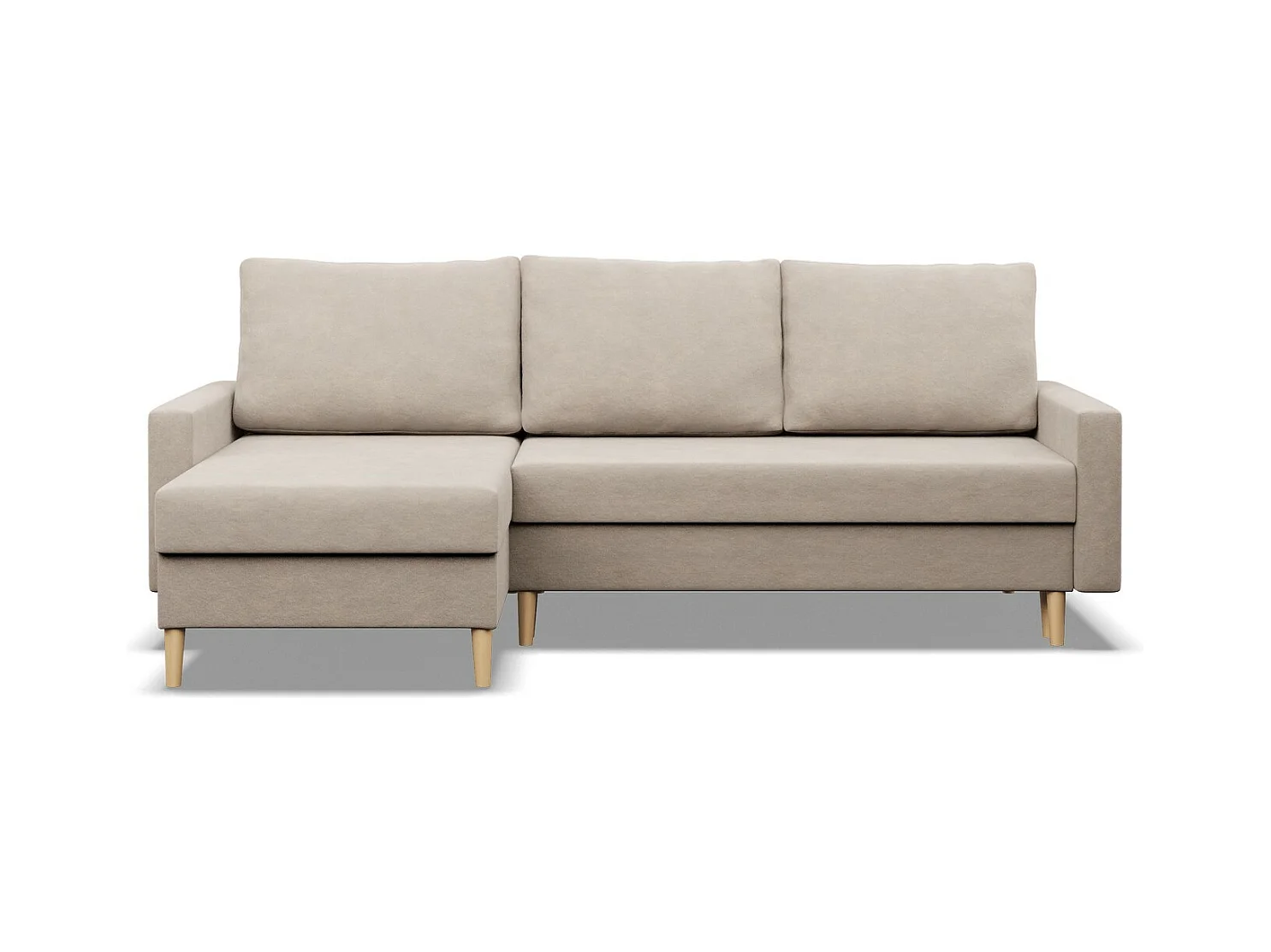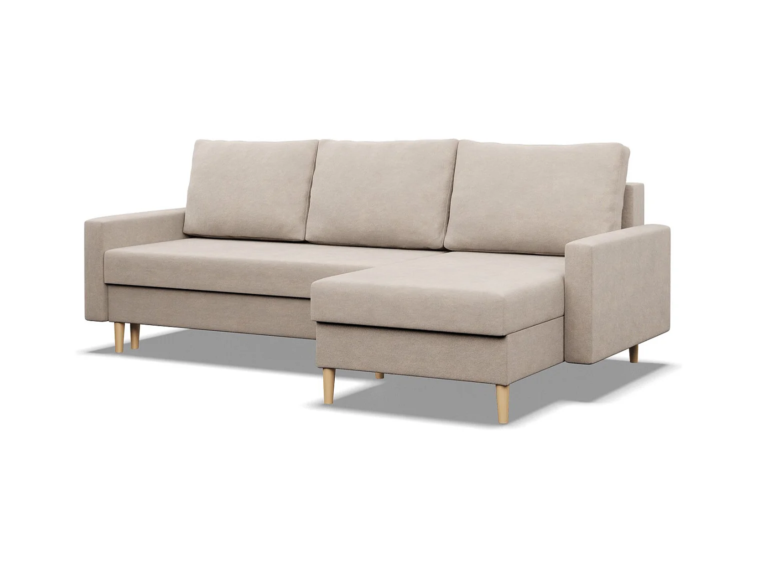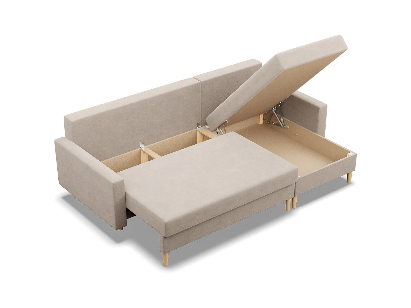 Canapé d'angle avec fonction couchage, Coussin réversible, Beige
