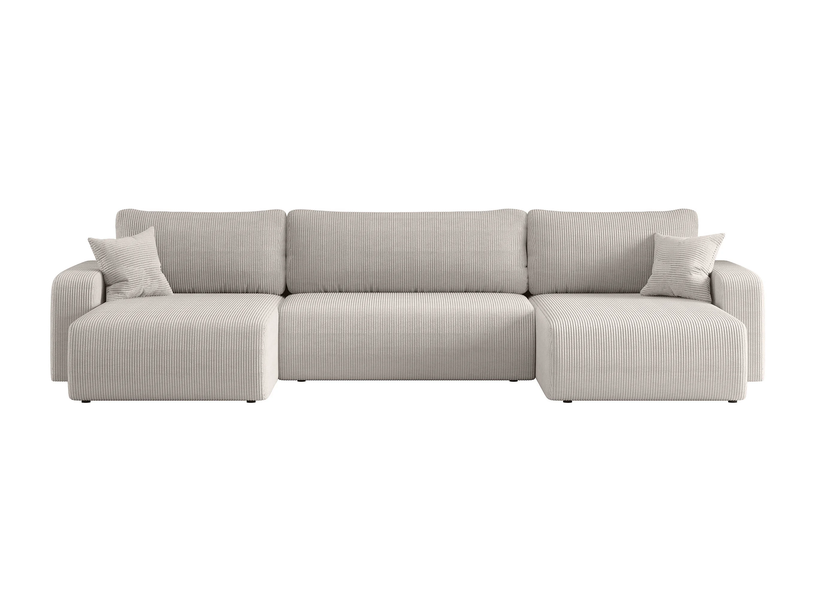 Canapé d'angle convertible en velours côtelé blanc PIANO U avec coffre et système de dépliage rapide