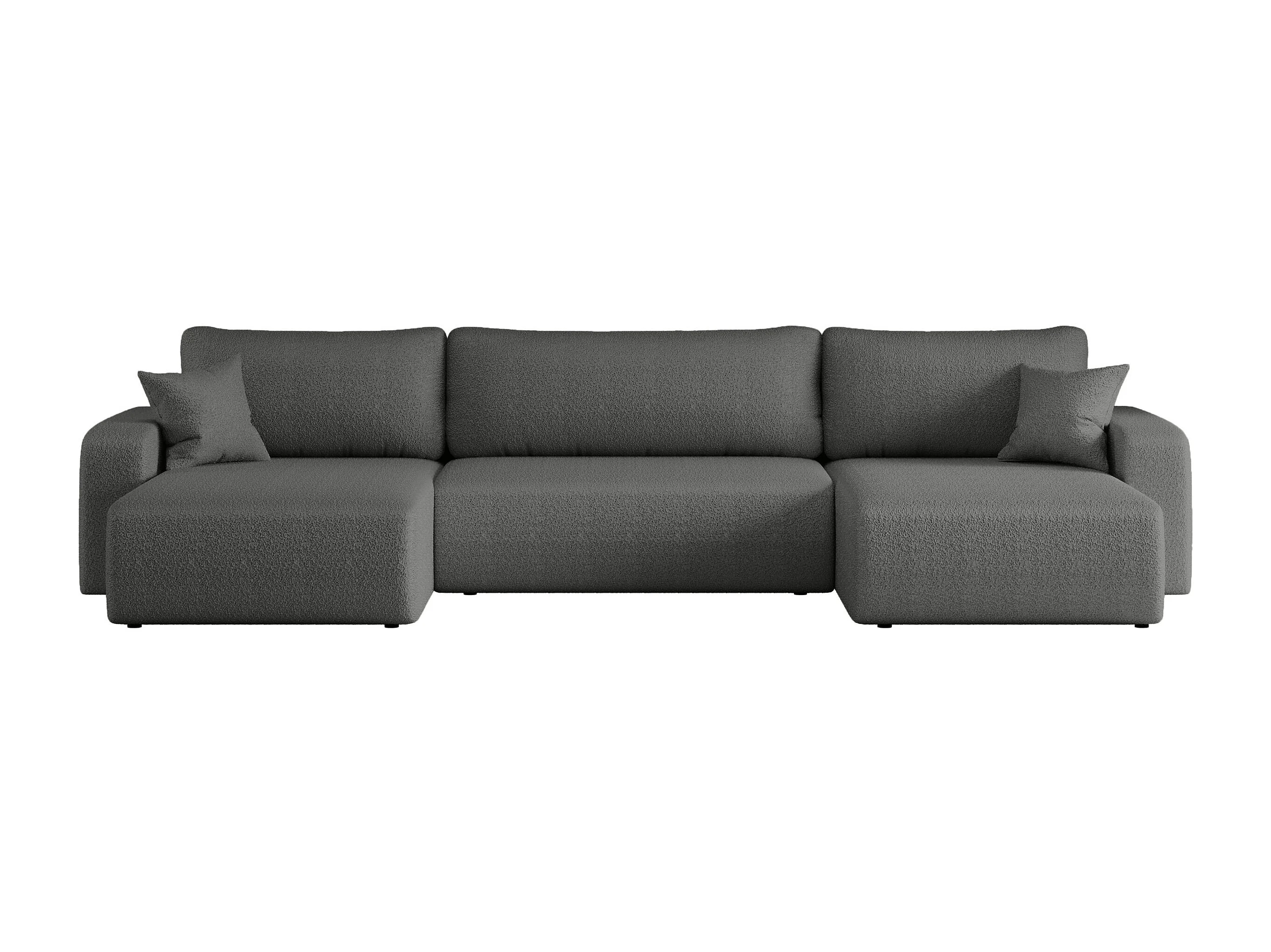 Canapé d'angle convertible en tissu bukle anthracite PIANO U avec coffre et système de dépliage rapide
