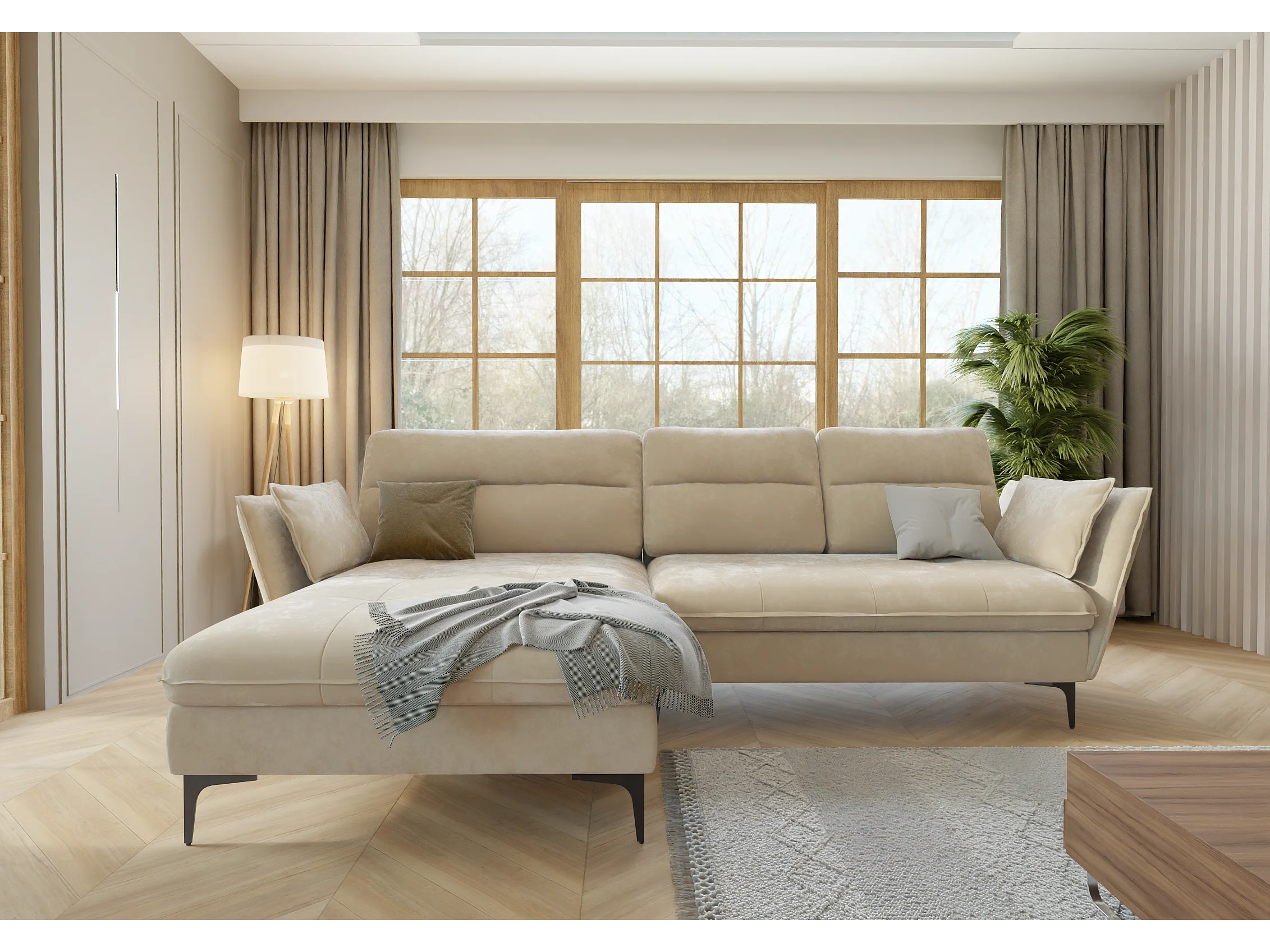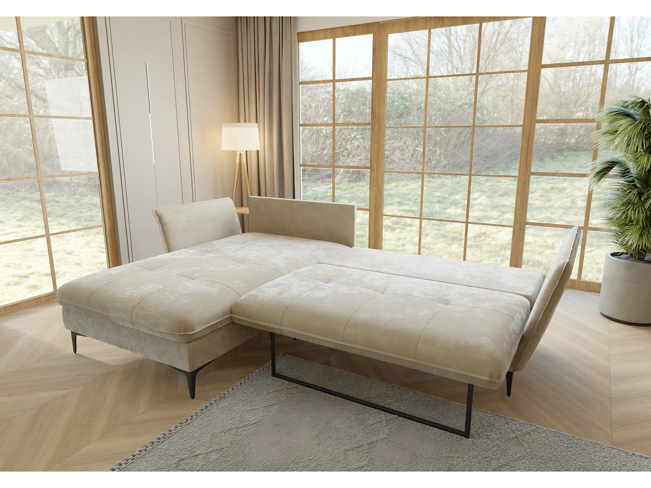 Canapé d’angle avec fonction lit et coffre de rangement, en tissu velours Christa