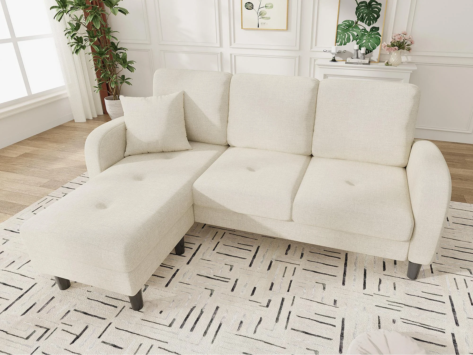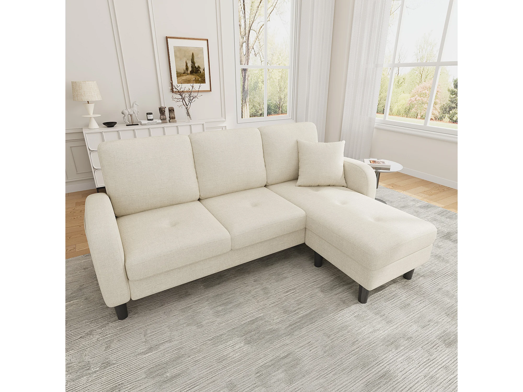 Canapé d'angle avec méridienne - 3 places - tissu en coton et lin - Beige clair