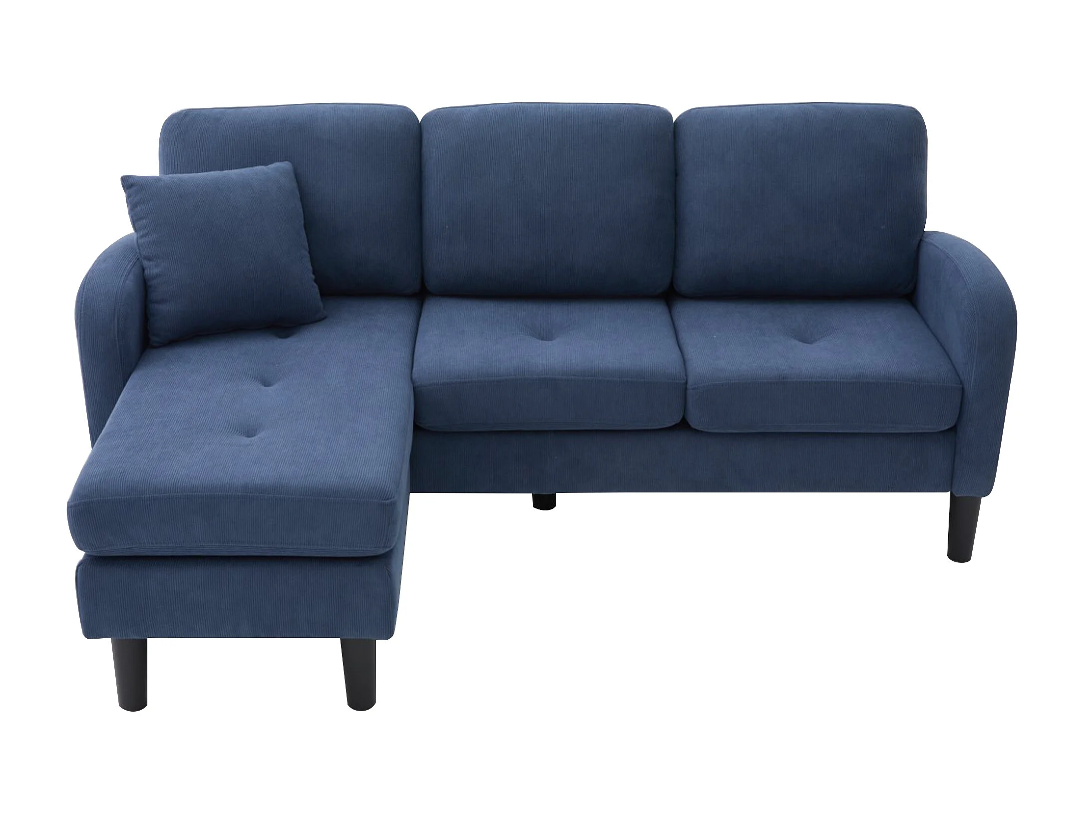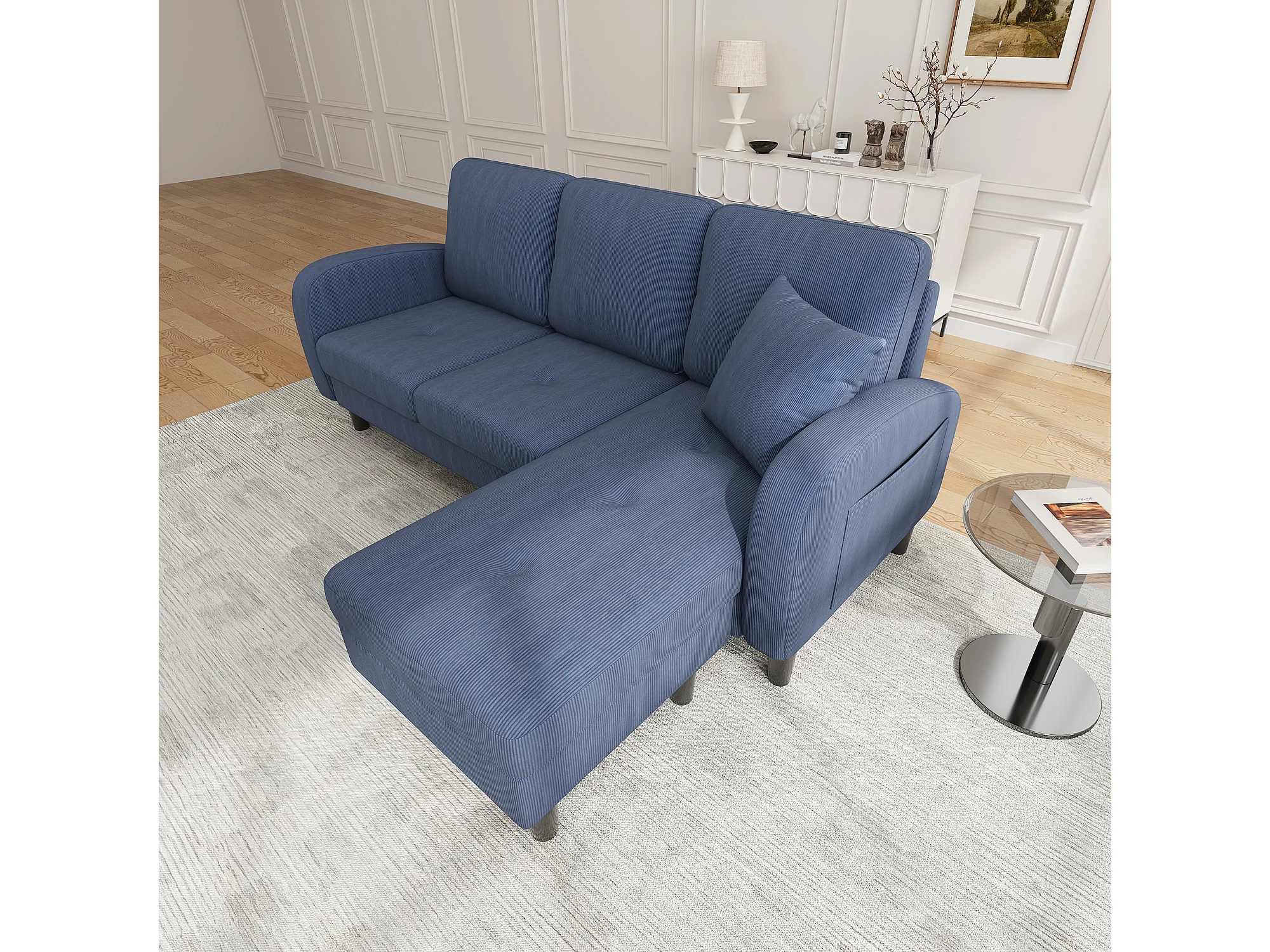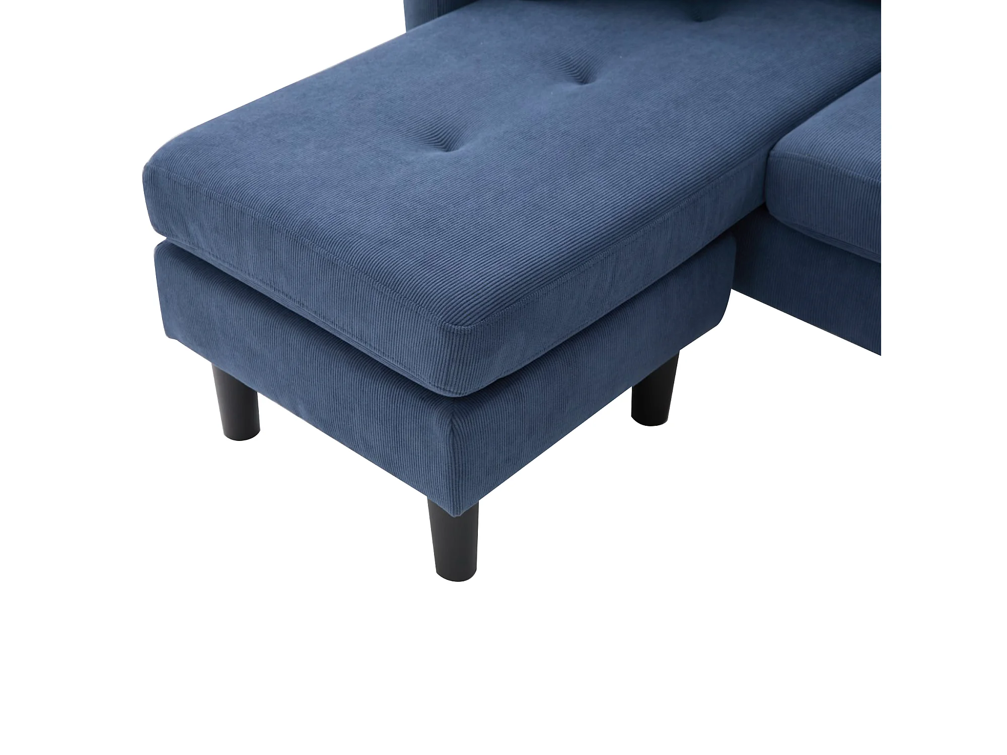 Canapé d'angle avec méridienne - 3 places - Velours côtelé - Bleu