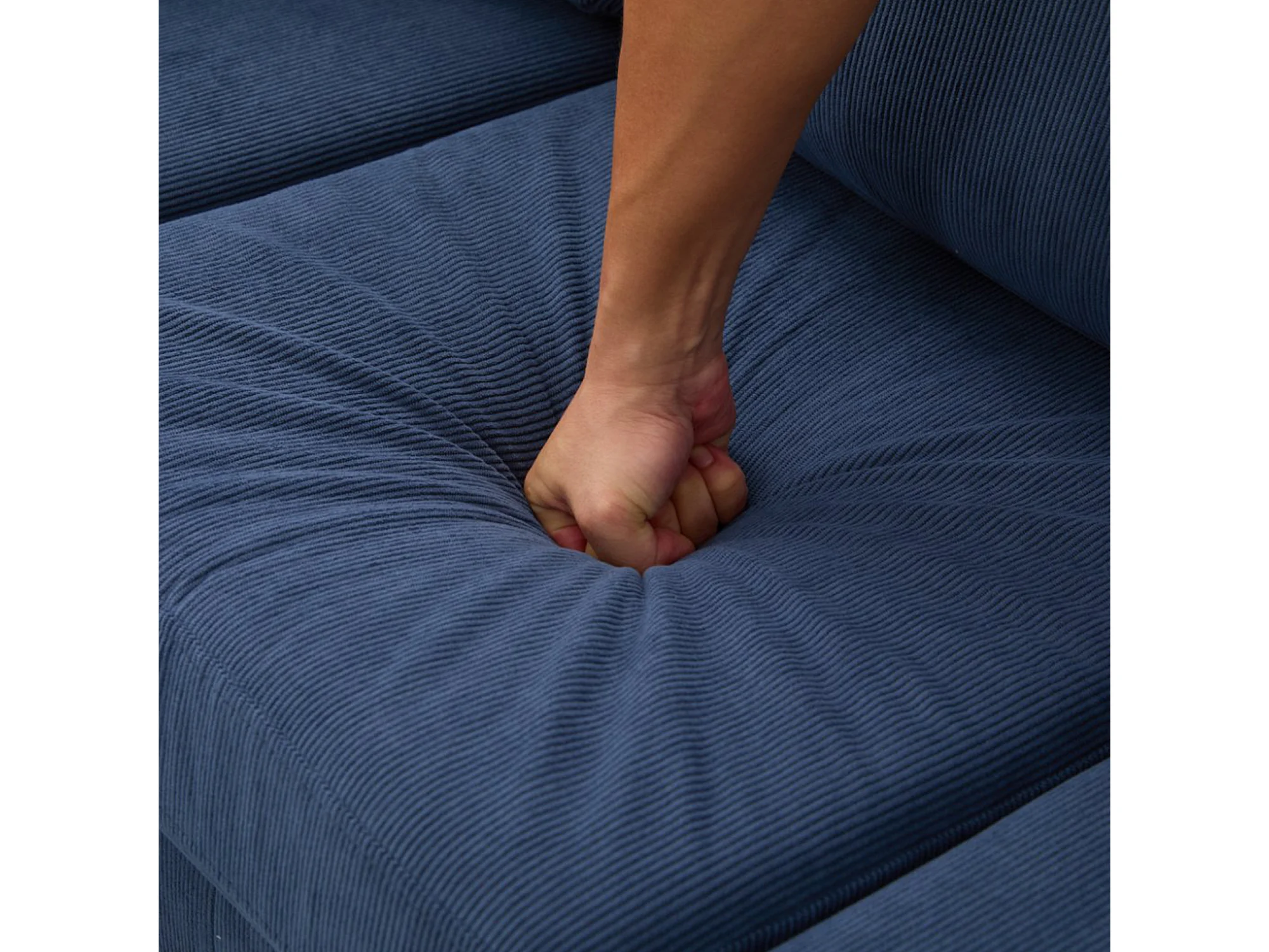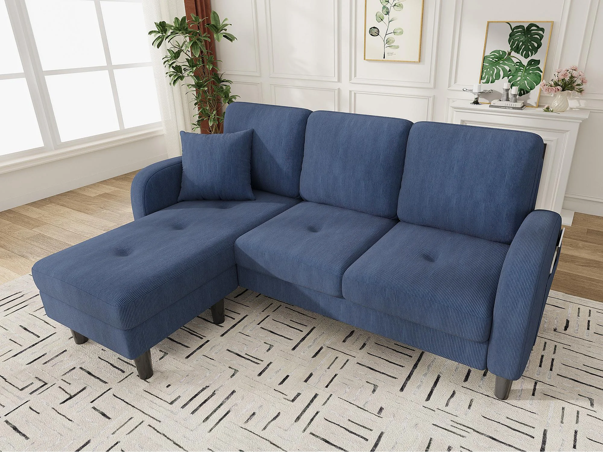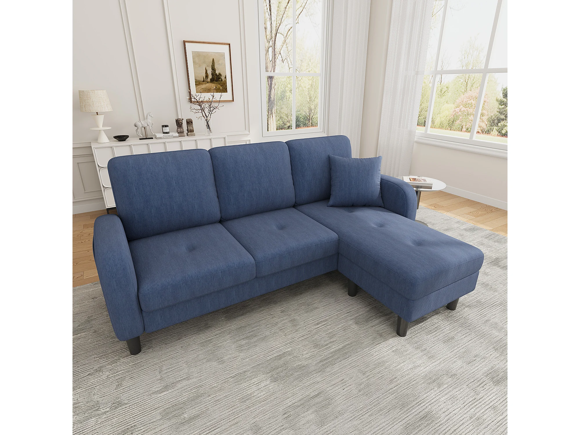 Canapé d'angle avec méridienne - 3 places - Velours côtelé - Bleu