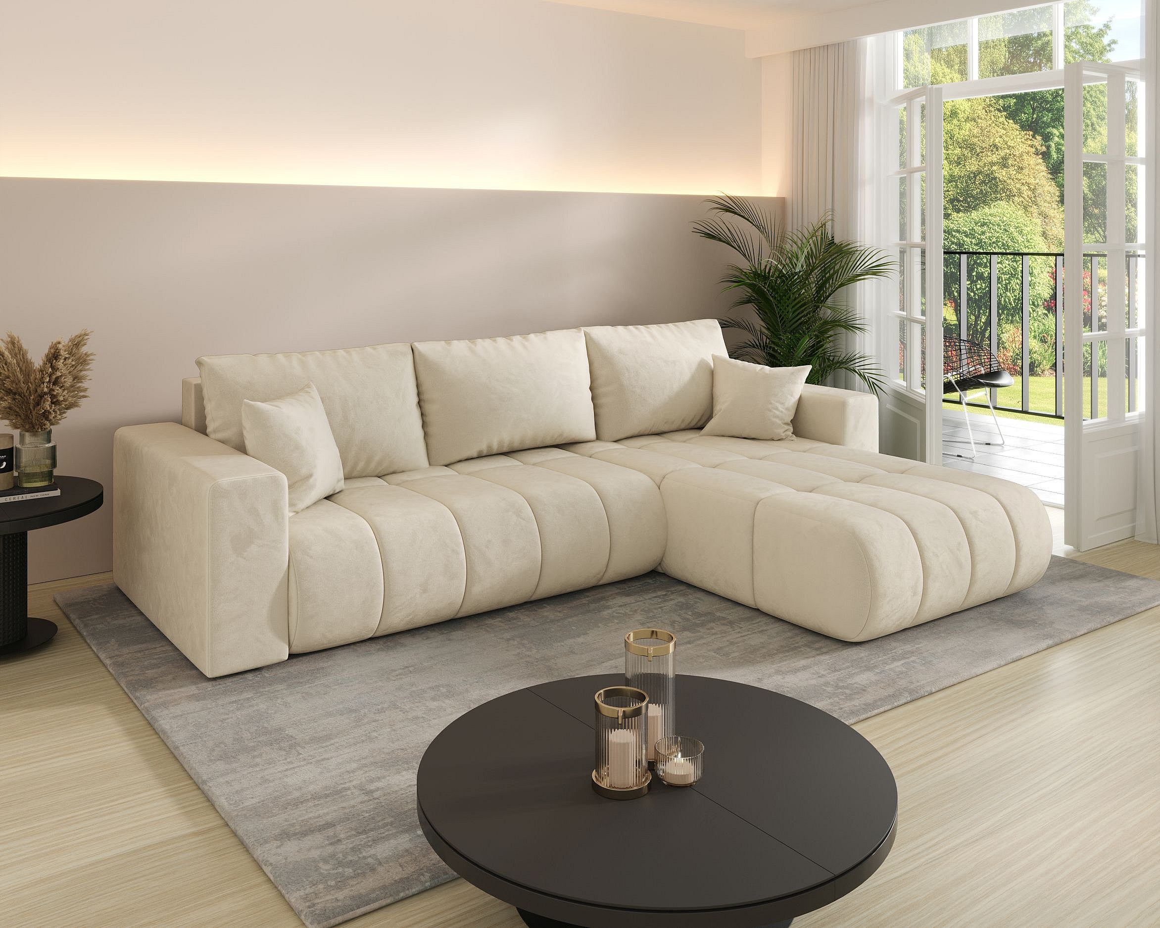 Canapé d’angle BEDANTE MILO PREMIUM L Monolith 02 avec fonction de couchage côté droit