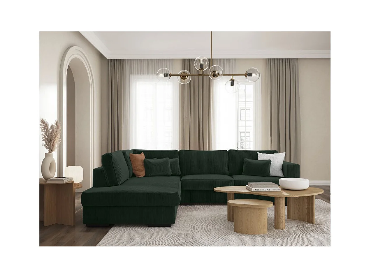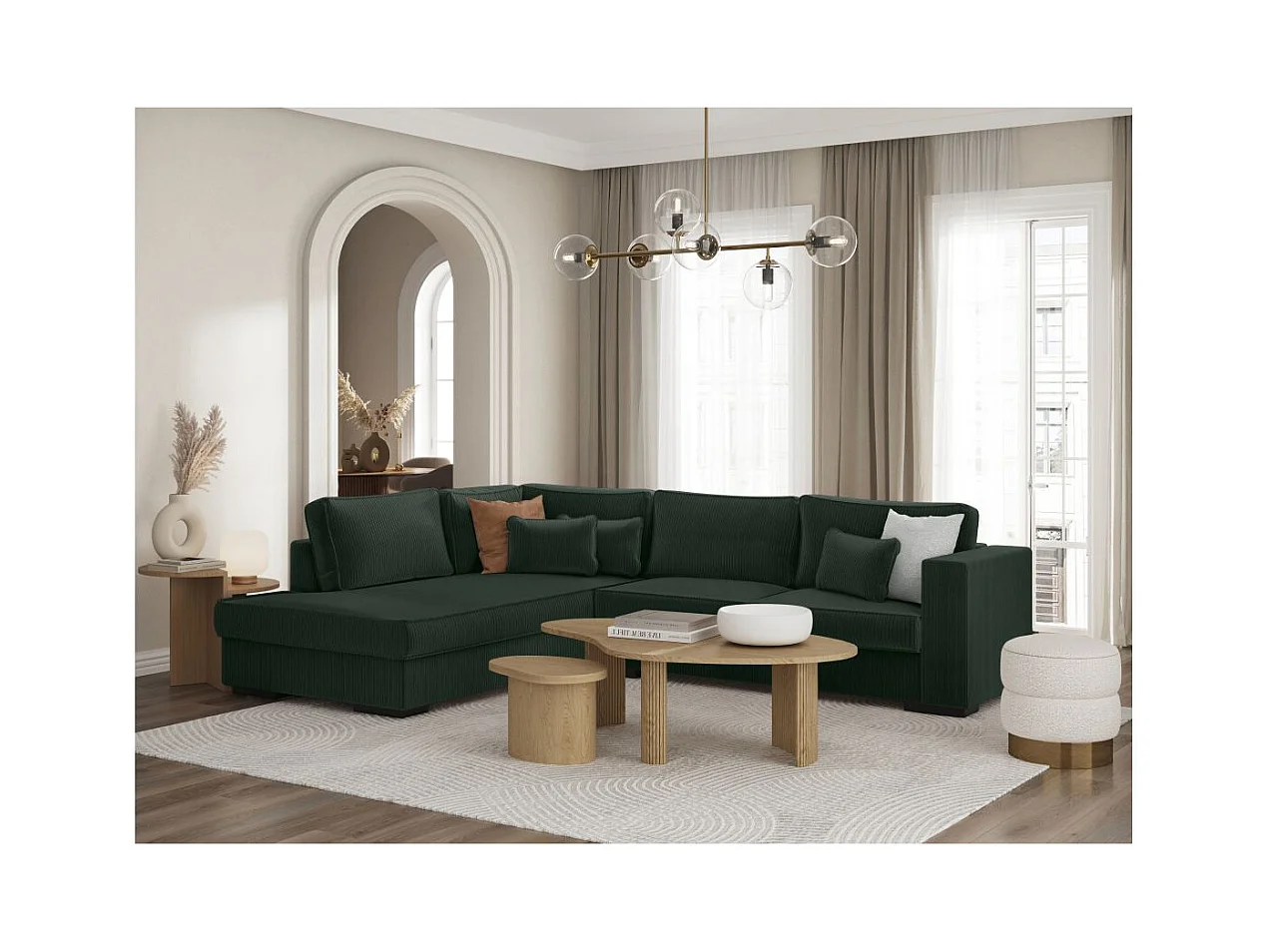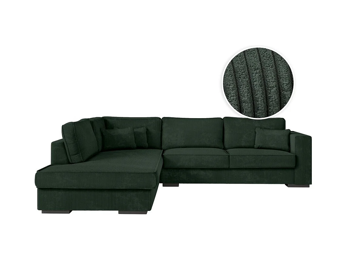 Canapé d'angle gauche Belami XXL 6 places en velours côtelé - Vert foncé - L303 x P228 x H86cm - Loungitude