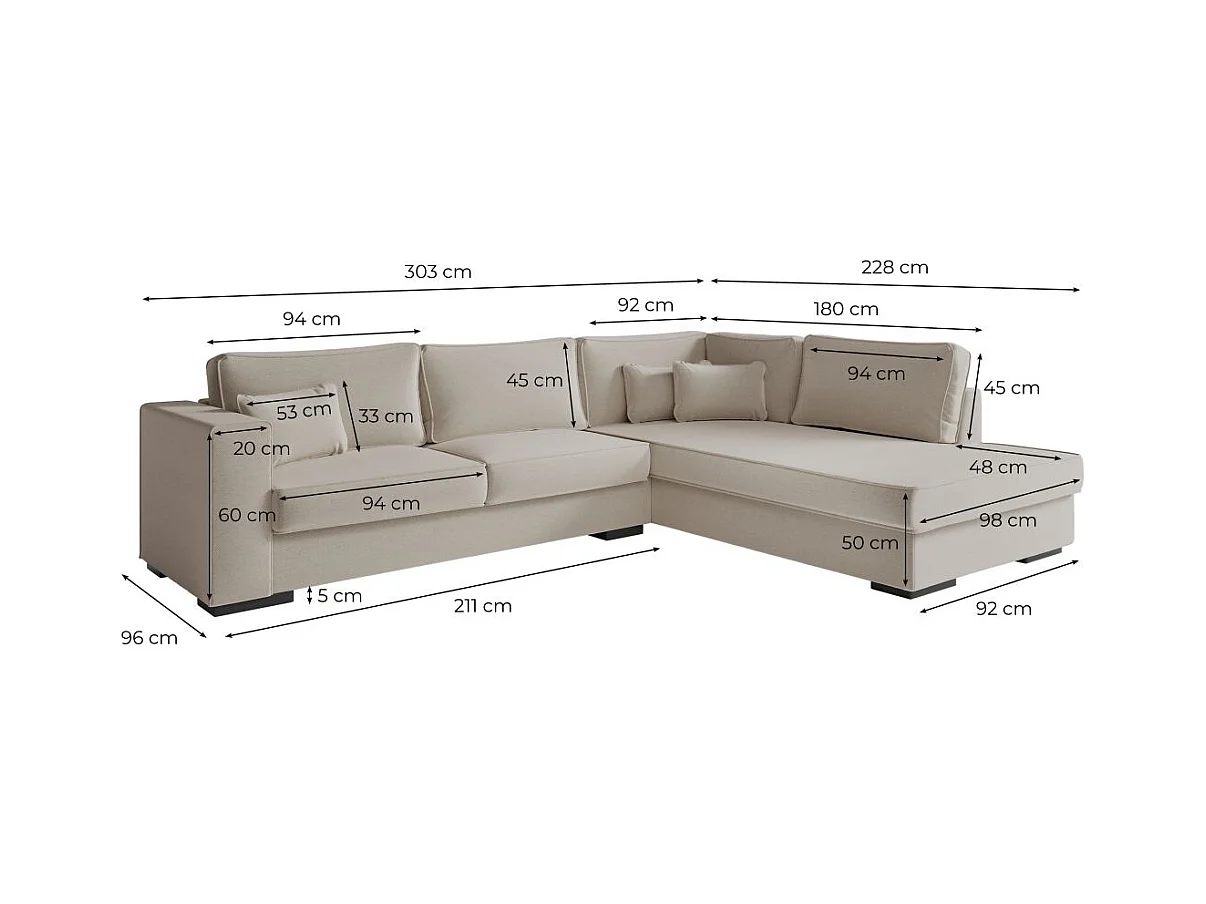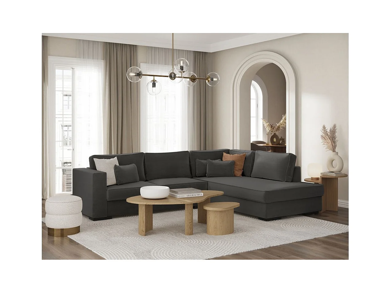 Canapé d'angle droit XXL Belami 6 places en tissu - Gris anthracite - L303 x 228 x 86cm - Loungitude
