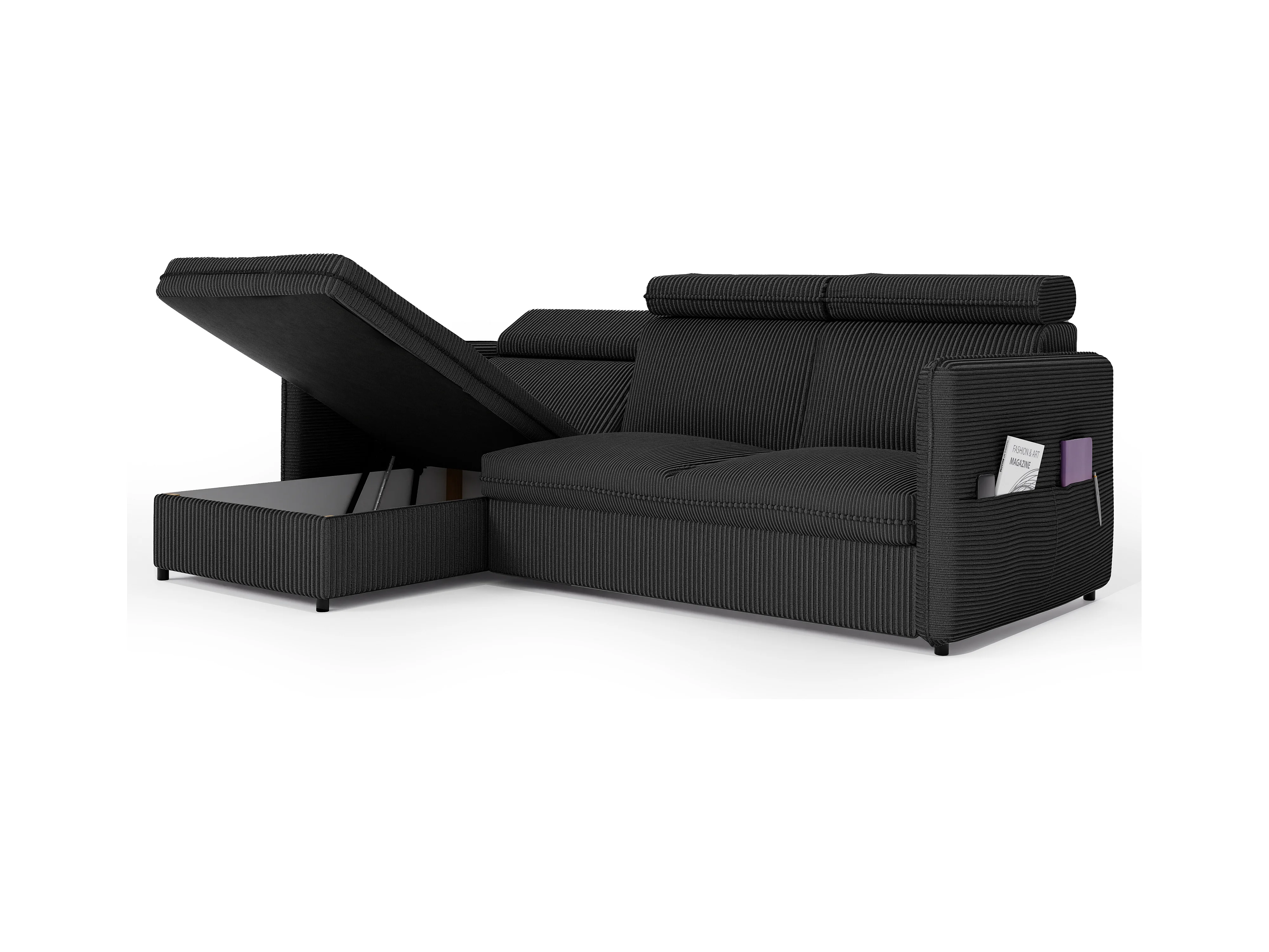 Canapé d'angle Beni réversible convertible en tissu Noir