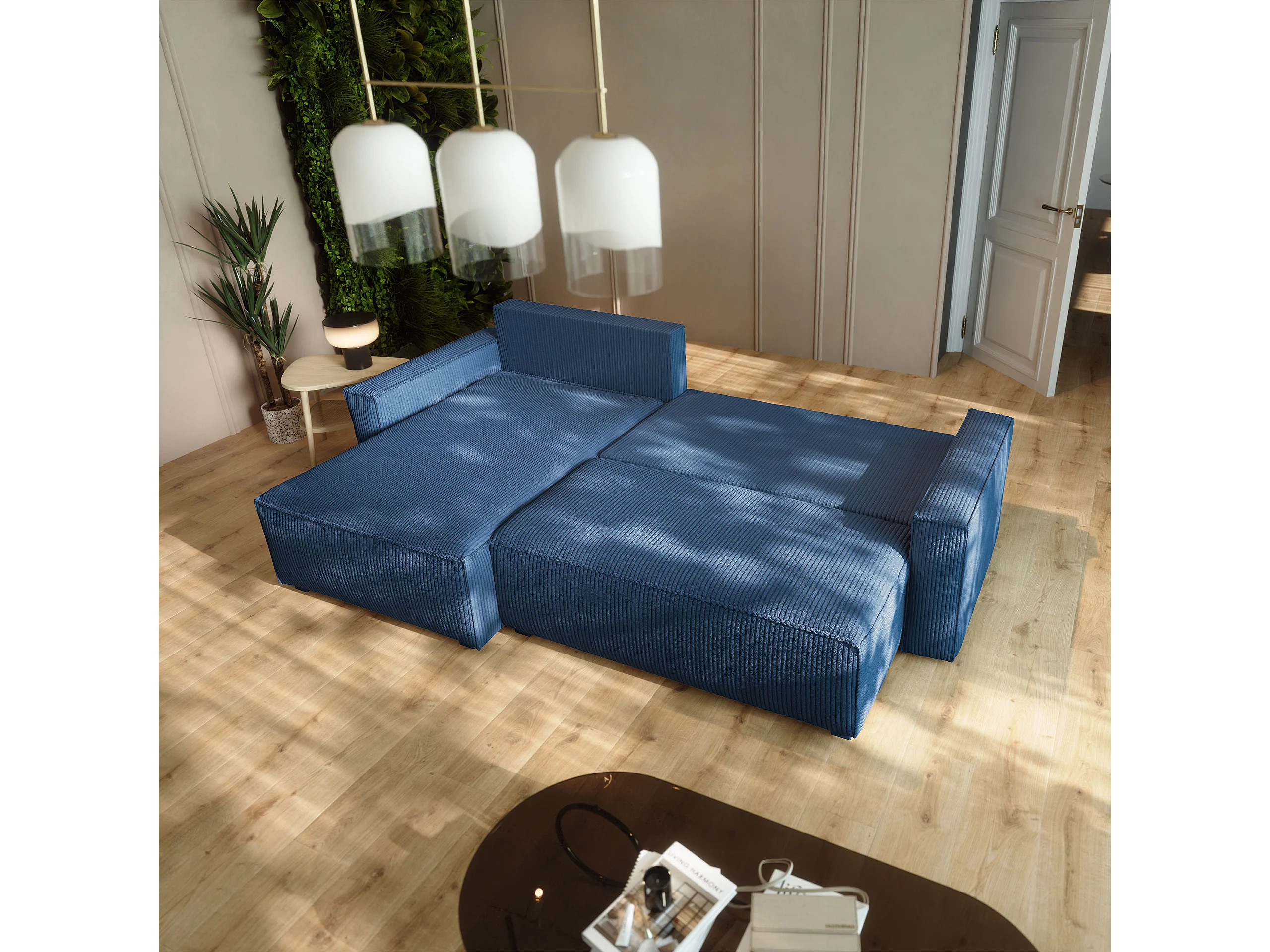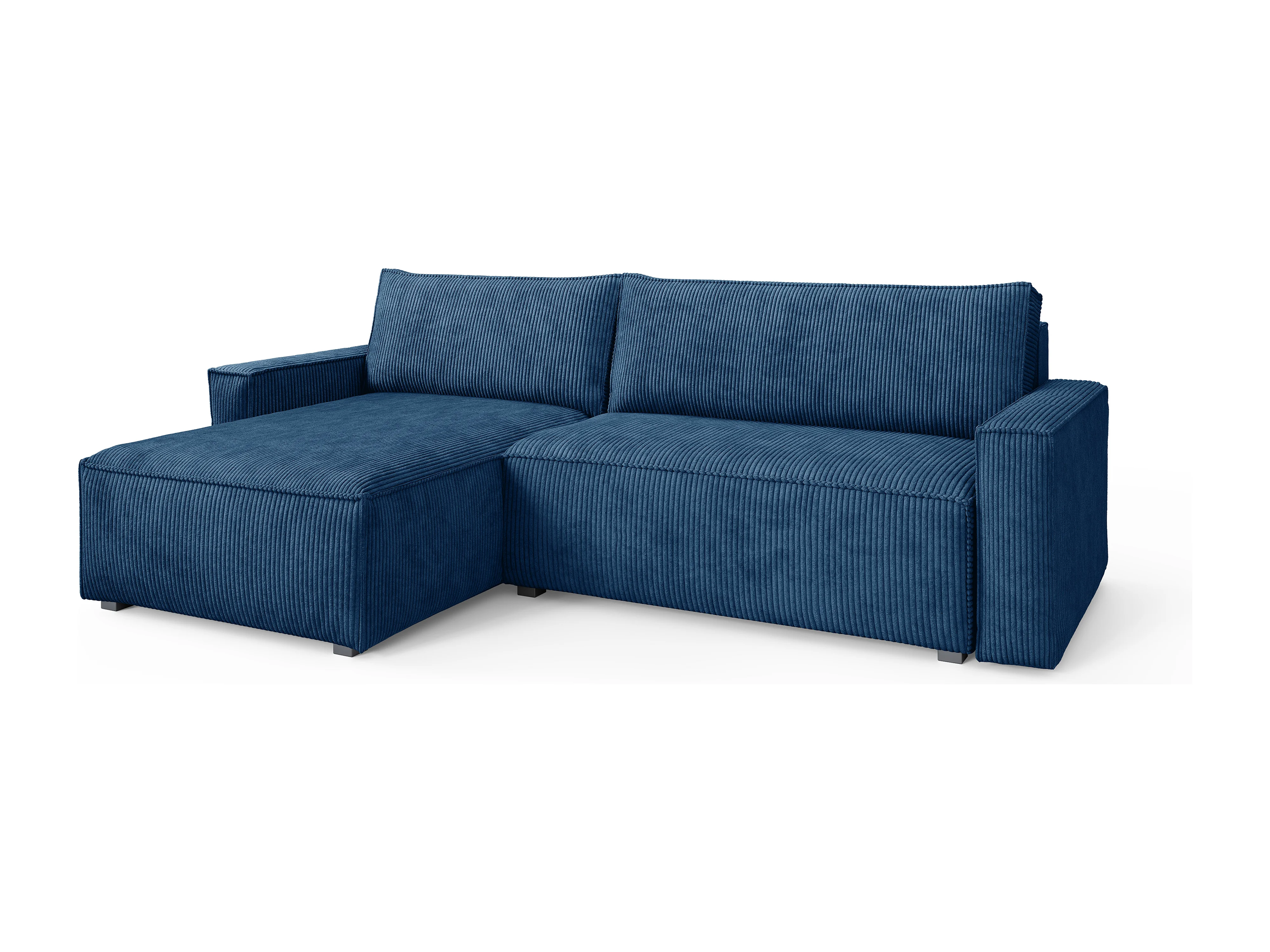 Canapé d'angle BESMIR Bleu en velours côtelé avec fonction de couchage