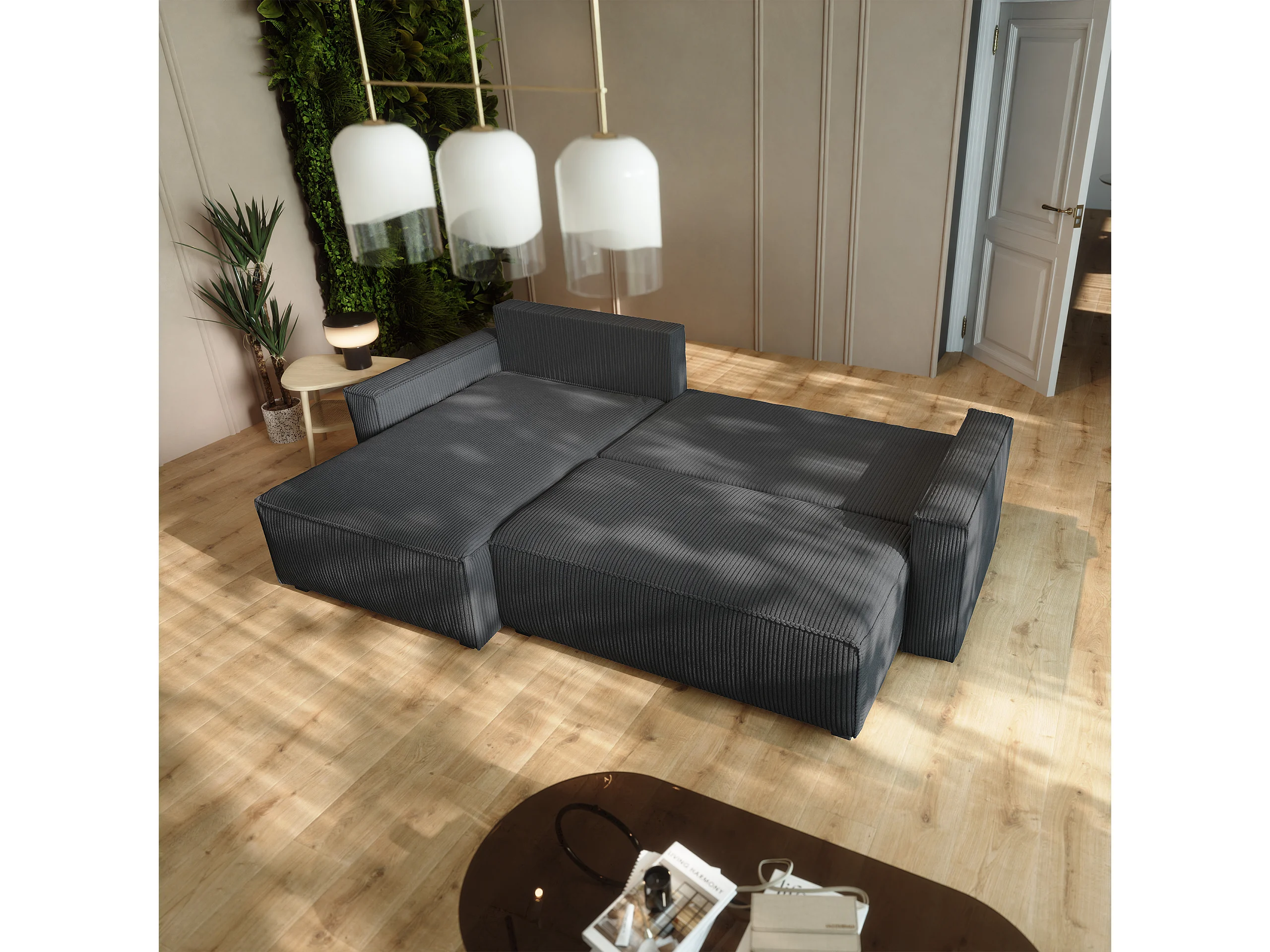 Canapé d'angle BESMIR Gris en velours côtelé avec fonction de couchage