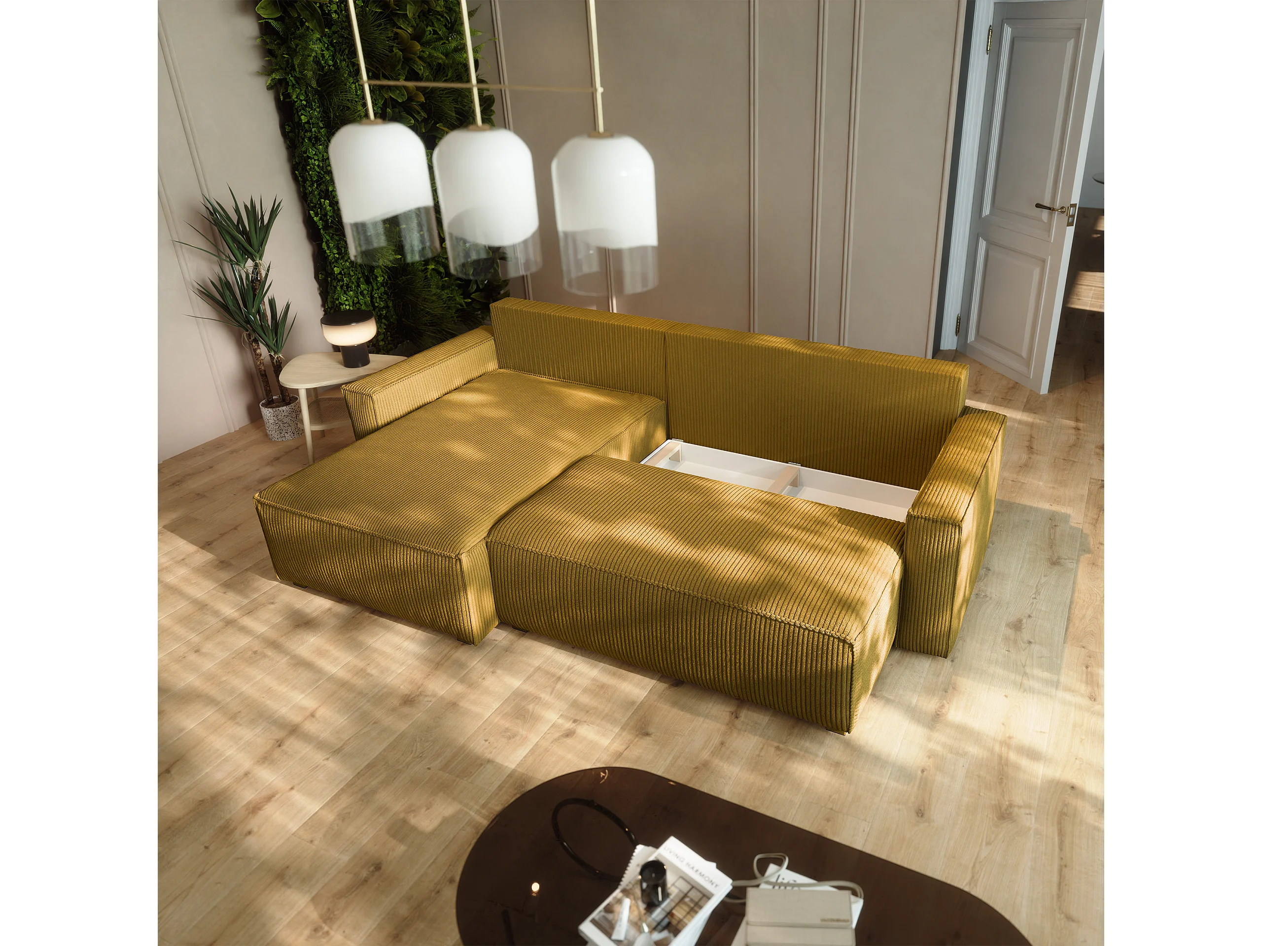 Canapé d'angle BESMIR Jaune en velours côtelé avec fonction de couchage