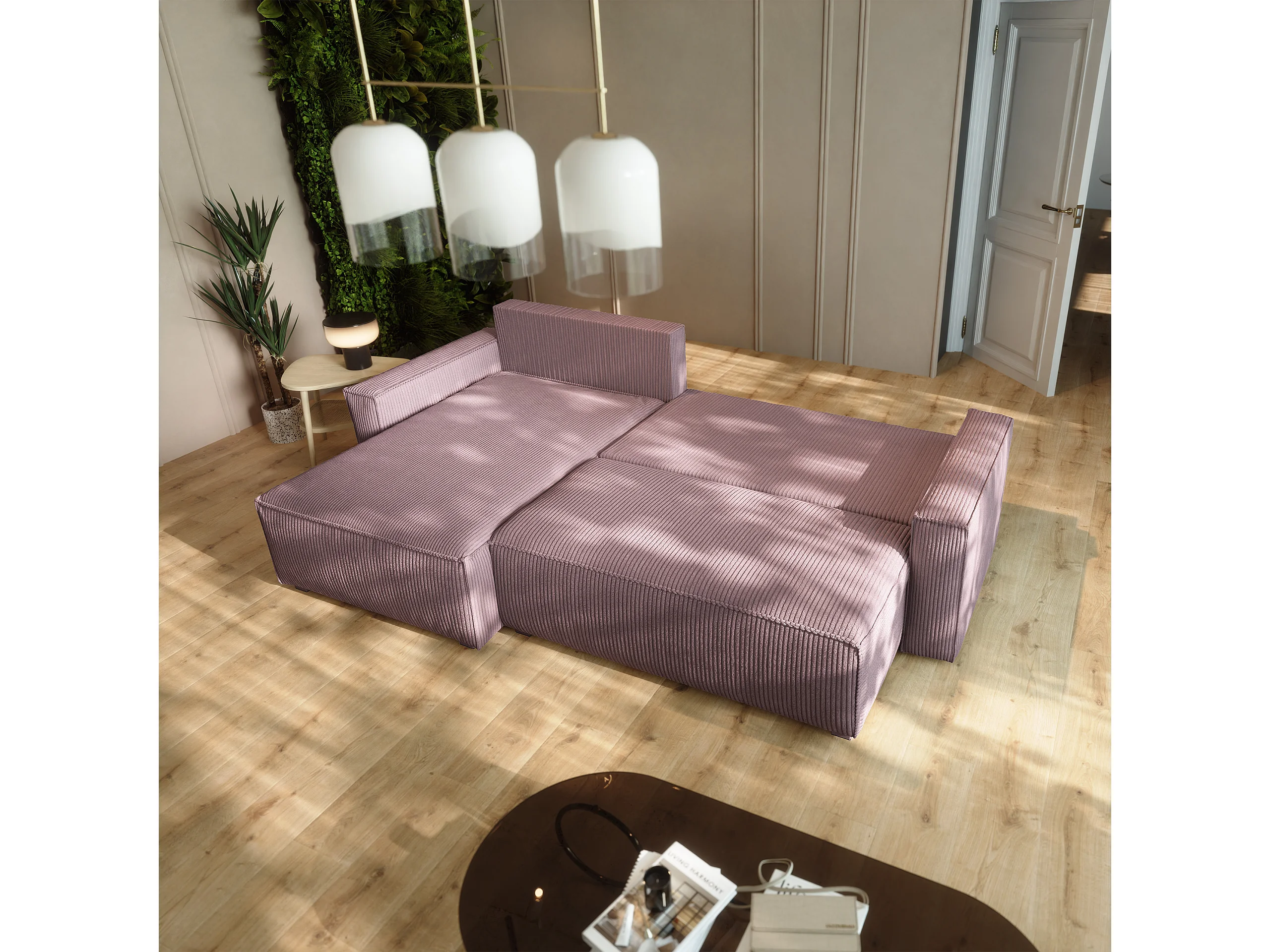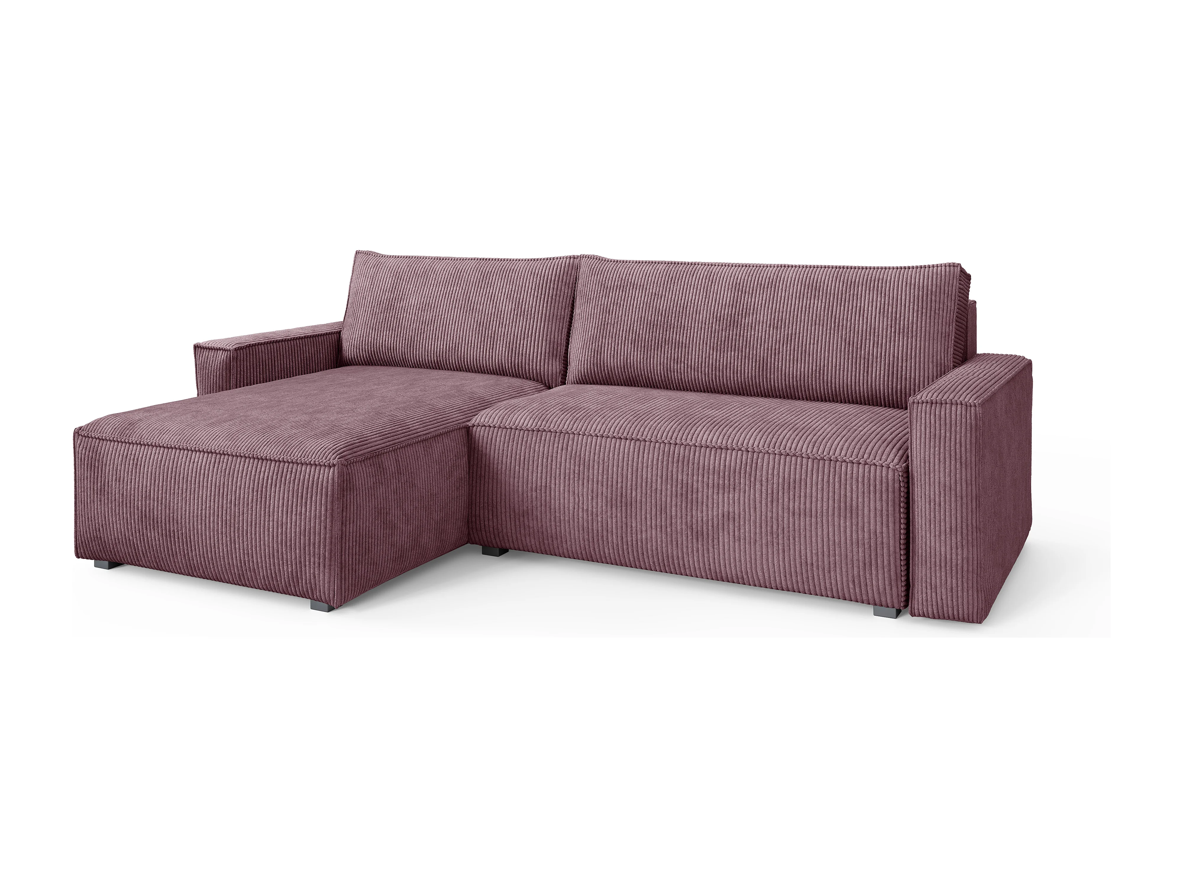 Canapé d'angle BESMIR Violet en velours côtelé avec fonction de couchage
