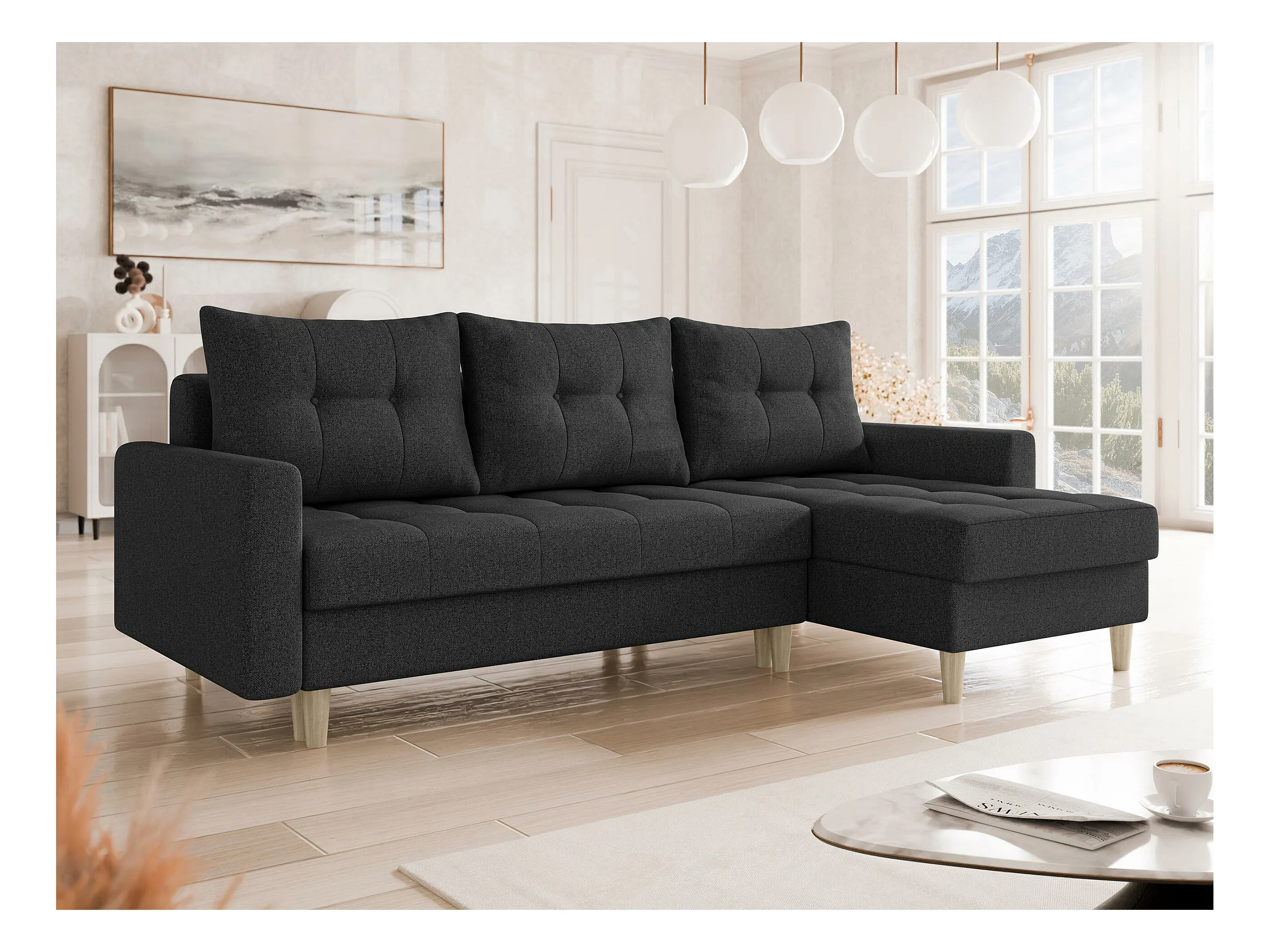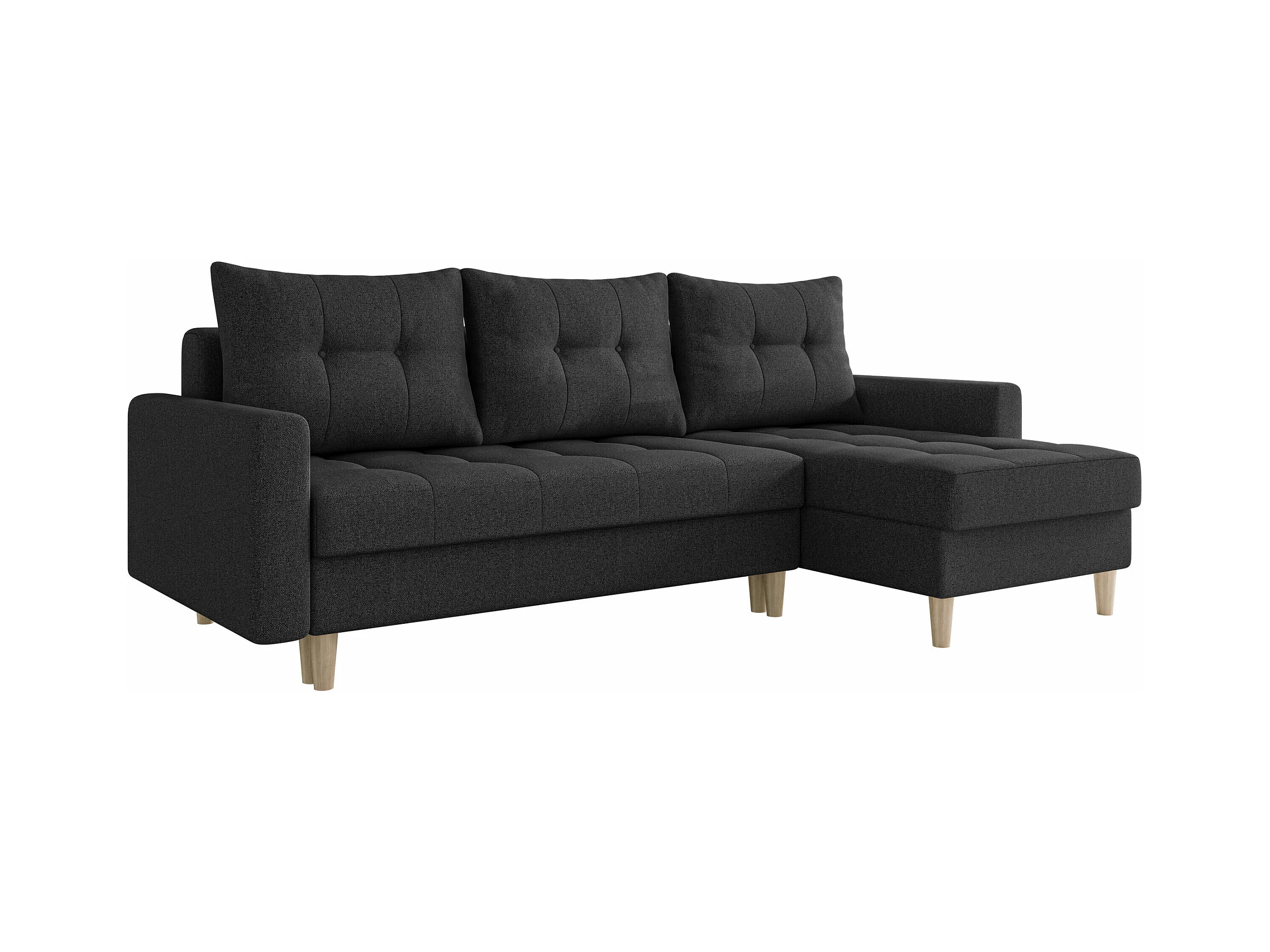 Canapé d'angle Boulder 100, Noir, Fonction de couchage, Boîte de literie, 222x140x90cm