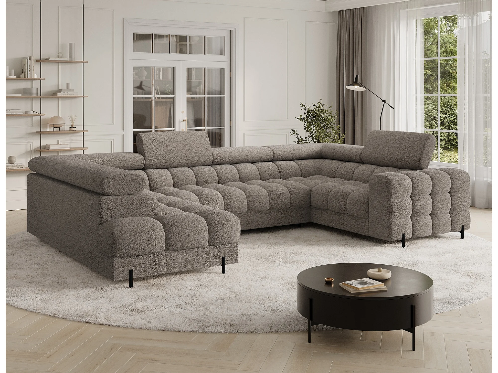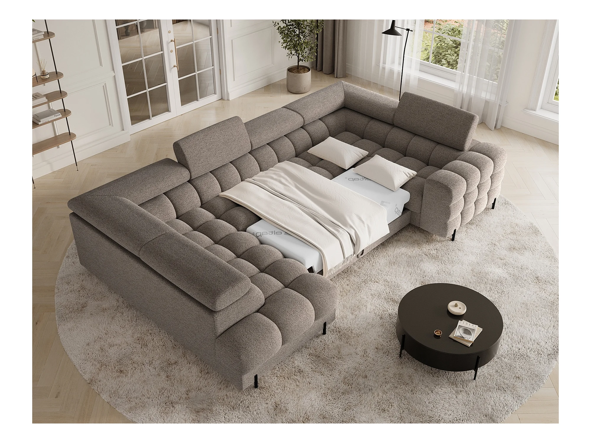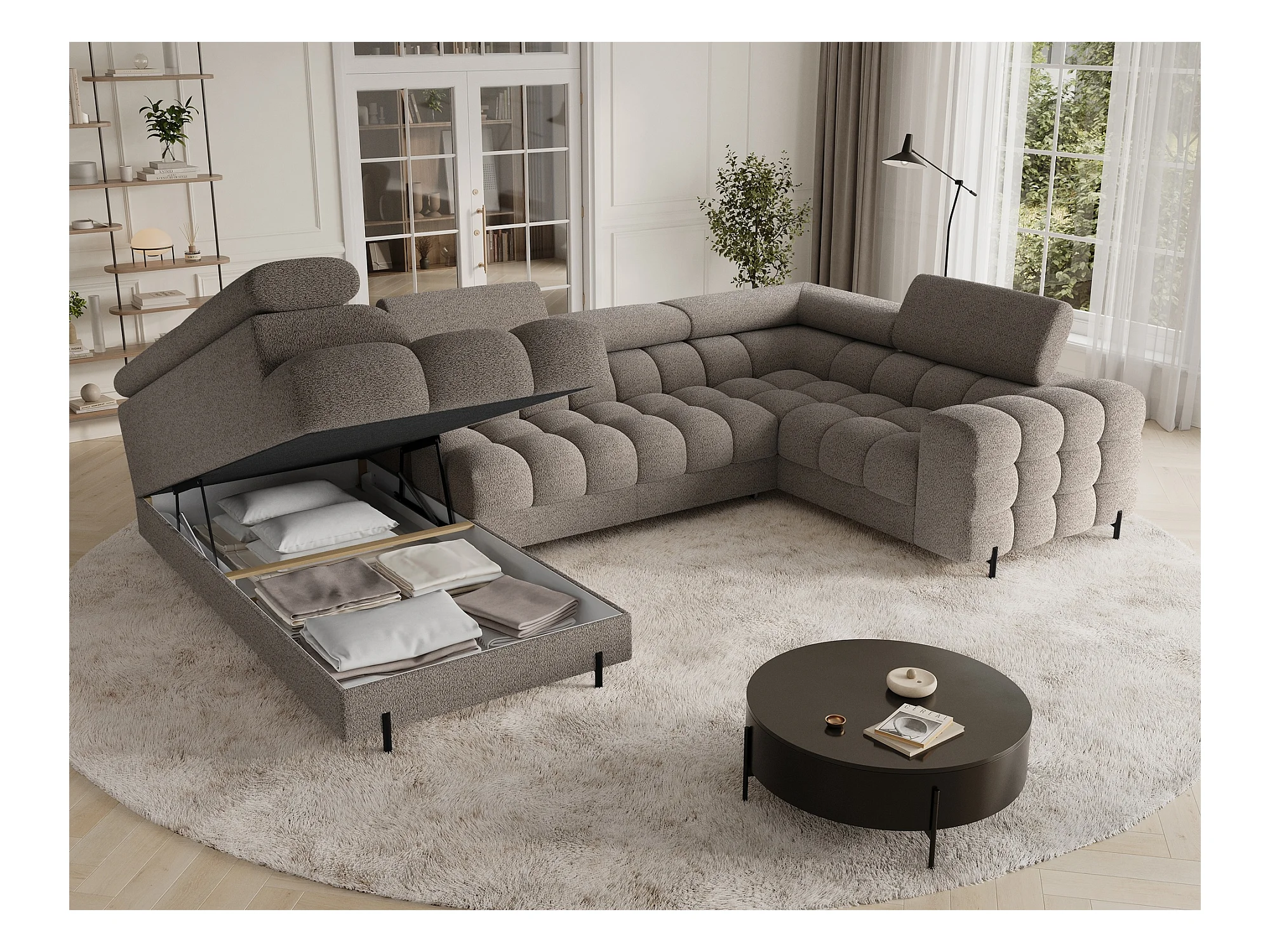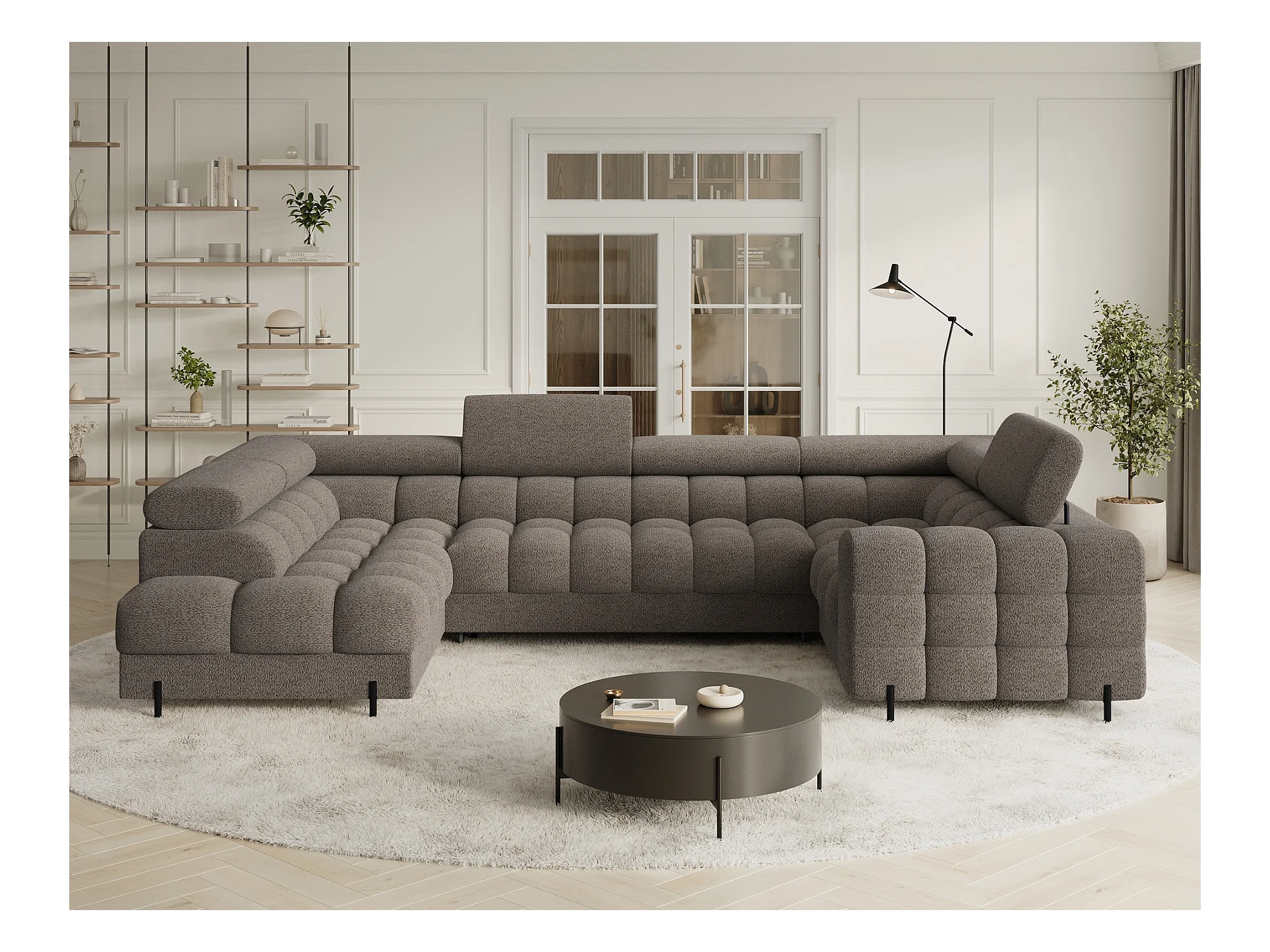 Grand canapé en U en tissu KARBON – Avec fonction lit et coffre-Marron-Méridienne A gauche